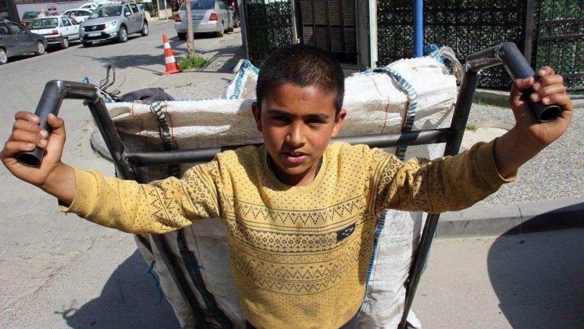 Aydın’da yaşayan 12 yaşındaki Suriyeli Halil Faik Süleyman, yaşı kadar kişinin ekmeğini çöplerden topladığı geri dönüşüm maddeleriyle kazanıyor.Yaşıtları 23 Nisan Ulusal Egemenlik ve Çocuk Bayramı’nı kutlarken, Halil Faik Süleyman gününü ekmek telaşıyla geçiriyor. Kendisi küçük ancak sorumluluğu büyük olan Halil Faik Süleyman, kendisinden büyük el arabasıyla sokak sokak dolaşıp geri dönüşüm maddesi topluyor.Suriye’deki Esad zulmünden ve savaştan kaçarak Türkiye’ye sığınıp Aydın’a gelen Suriyeli aileler zor şartlarda yaşamaya çalışıyor. Özellikle pek çok çocuğun omuzlarına yüklenen ağır yük ve sorumluluk karşısında yaşadığı zorlu hayat yürek burkuyor. Kardeşlerini ve ailesini kendisinin geçindirdiğini, bu nedenle çalışmak zorunda olduğunu belirten Suriyeli Halil Faik, her gün tüm şehri dolaşarak çöplerden geri dönüşüm malzemesi toplayıp sattığını söylediGeri dönüşüm maddesi bulduğunda mutlu olan ancak görenlerin yüreklerini sızlatan Suriyeli çocuk, Yedieylül Mahallesi Eski Çine Caddesi’nde aracıyla atık toplamaya devam etti.