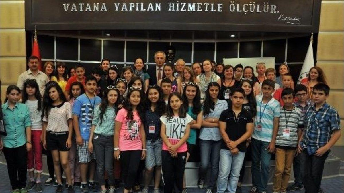 Avrupa Birliği (AB) ülkeleriyle kültürel paylaşım platformu olan Comenius projesi okul ortaklıkları kapsamında, Gülveren Ortaokulu’nun konuğu olarak Antalya’ya gelen yabancı öğrenci ve öğretmenler, Kepez Belediyesi’ni ziyaret etti.Avrupa Birliği (AB) ülkeleriyle kültürel paylaşım platformu ‘Comenius’ çerçevesinde proje ortaklarından Gülveren Ortaokulu’nun konuğu olarak Antalya’ya gelen Belçika, İtalya ve İspanya’dan 23 kişilik öğretmen ve öğrenci grubu, Kepez Belediyesi’ni ziyaret etti.Kepez Belediye Başkan Yardımcısı Mustafa Özsoy’un ağırladığı ve Gülveren Ortaokulu Müdürü Osman Ertekin, bazı öğrencileri ile Belçika, İtalya ve İspanya’dan 3 öğretmen ve 20 öğrencinin yer aldığı ziyaret, Kepez Belediye Meclis Toplantı Salonu’nda gerçekleşti. Başkan Yardımcısı Özsoy, burada yaptığı konuşmada yabancı konukları ağırlamaktan duyduğu memnuniyeti ifade etti.Kepez ve Kepez Belediyesi hakkında bilgiler veren Özsoy, daha sonra öğrencilerin sorularını yanıtladı. Özsoy, “Comenius projesi, öğrencilerin kişisel gelişimleri için çok önemli. Farklı kültürlerin tanınması ve bilinmesi açısından Kepez Belediyesi olarak da elimizden geleni yapmaya hazırız” dedi.Ziyaretin sonunda ise Türk ve yabancı öğrenciler hep birlikte hatıra fotoğrafı çektirdi. Başkan yardımcısı Özsoy da günün anısına yabancı konuklara hediyeler verdi.