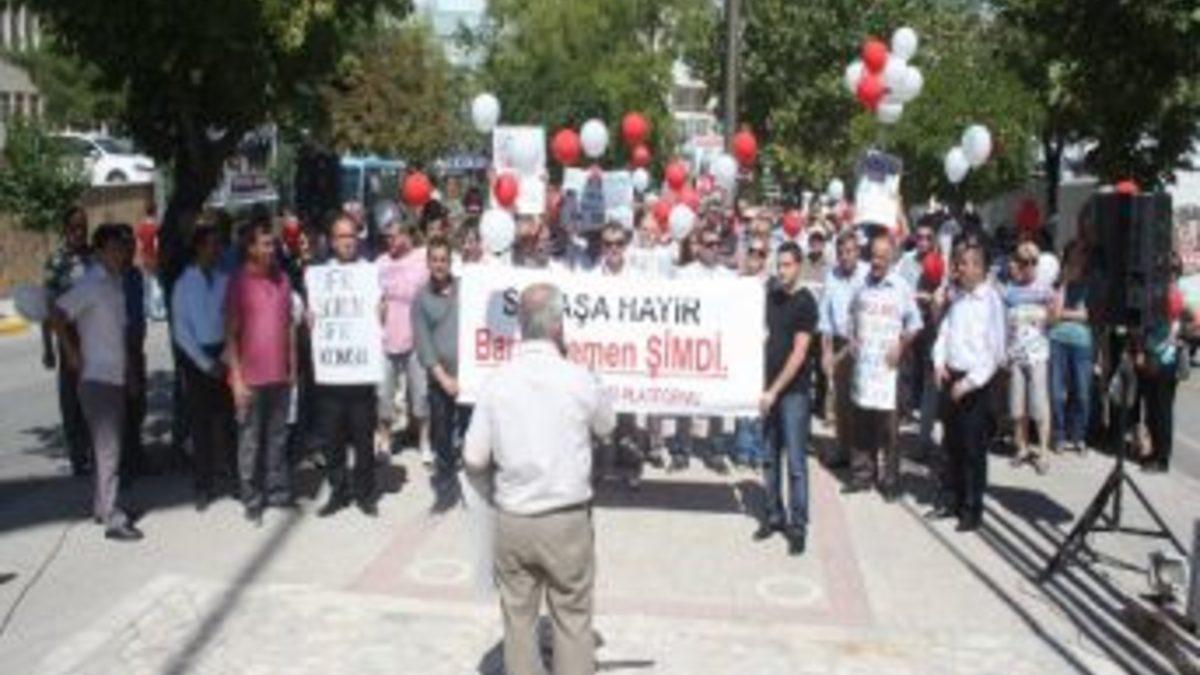 Konuşmanın ardından ise, barışın simgesi olan güvercinler serbest bırakılırken, daha sonra ise barış zinciri oluşturuldu. Etkinliğe katılanlar tek sıra halinde Cumhuriyet Meydanı’ndan Tekel Meydanı’na kadar sloganlar atarak yürüdükten sonra, tekrar Cumhuriyet Meydanı'na döndü. Ardından etkinliğe katılanların ellerinde bulunan balonlar, hep birlikte havaya salınarak, barış mesajı verildi.