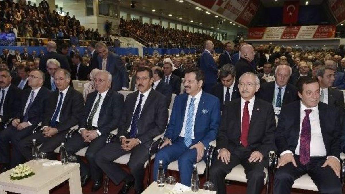 CHP Genel Başkanı Kemal Kılıçdaroğlu, "Nasıl bir başkanlık sistemi, bir kişi konuşacak Türkiye susacak, hakim ona göre karar verecek, ona göre milletvekili listeleri hazırlanacak. Böyle bir başkanlık sistemini kan dökmeden bu ülkede gerçekleştiremeyiz" dedi.CHP Genel Başkanı Kemal Kılıçdaroğlu, TOBB Genel Kurulu’nda yaptığı konuşmada iş dünyasının yaşadığı sorunların çok daha açık dile getirilmesini istediğini belirterek, genel kurullarda Türkiye’nin ekonomi ve siyasetinin masaya yatırıldığını ifade etti. İş dünyasının ve Türkiye’nin içinde bulunduğu sorunları ana başlıklar halinde sunmaya çalışacağını anlatan Kılıçdaroğlu, Türkiye’nin tarihin en derin krizlerinden birinin yaşandığı ve Genel Kurul’a Türkiye Cumhuriyeti Başbakanının katılamadığını savundu. Son iki seçimde Başbakan Ahmet Davutoğlu’nun başarı elde ettiğini söyleyen Kılıçdaroğlu, "Geldi başbakanlık koltuğuna oturdu, yasalara, anayasaya göre. Bir sabah kendisini saraya çağırdılar, görevi bırakacaksın. Neye göre bırakacaksın? 23 milyon 600 bin oy almış siyasi partinin genel başkanına bir kişi diyor ki ’Görevi bırakacaksın’. Demokrasi bu mu? Bu oyları çöpe atmaya kimin hakkı ve yetkisi var?" diye konuştu.Kılıçdaroğlu, Türkiye’nin 5 temel sorun alanı olduğunu belirterek, "Bir ekonomi, iki demokrasi, üç dış politika, dört eğitim, beş toplumsal barış" dedi.Yeni anayasa çalışmalarına ilişkin değerlendirmede bulunan Kılıçdaroğlu, Hisarcıklıoğlu’nun konuşmasında ’Yeni anayasa yapılacaksa bizim can ve mal güvenliğimiz, güvence altına alınmalıdır’ dediğini hatırlattı. Kılıçdaroğlu, "Can ve mal güvenliğinizin olmadığını siz de biliyorsunuz. Peki ben size şu soruyu soruyorum, ’yargı ve yasama benim için ayak bağıdır’ dendiği zaman içinizden bir yürekli insan çıkıp neden itiraz etmedi? Siz madem demokrasiyi savunuyordunuz neden itiraz etmediniz? Yargıtay Başkanımız açıkladı, ’Yargıya güven yüzde 30’lara düştü’ diye. Bir ülkede adalet yoksa o ülkede devlet, güven yoktur. Bir ülkede adalet mülkün temelidir. İnsani gelişmişlik endeksinde 2015’te 3 sıra geriledik. 69’uncu sıradan 72’nci sıraya geriledik" şeklinde konuştu.Başkanlık sistemi tartışmalarına işaret eden Kılıçdaroğlu, "Bu anayasa diyor ki yargı bağımsızdır. Hiçbir organ yargıya emir ve talimat veremez diyor. Anayasa darbe hukuku ile beraber ele alınacaksa değiştirelim. Nasıl bir başkanlık sistemi, bir kişi konuşacak Türkiye susacak, hakim ona göre karar verecek, ona göre milletvekili listeleri hazırlanacak. Böyle bir başkanlık sistemini kan dökmeden bu ülkede gerçekleştiremeyiz. Tepeden tırnağa yeniden yazacağız, ilk 4 maddesi bizim için dokunulmaz dedik" ifadelerini kullandı.Kemal Kılıçdaroğlu, TBMM Başkanı İsmail Kahraman’ın laiklikle ilgili sözlerini de hatırlatarak, "TBMM’nin Başkanı kalkacak ’Laiklik anayasadan çıkarılmalıdır’ diyecek. Kusura bakmayın ama TÜSİAD kadar yürekli olamayacaksınız, bunu kabul edemiyorum" şeklinde konuştu.
