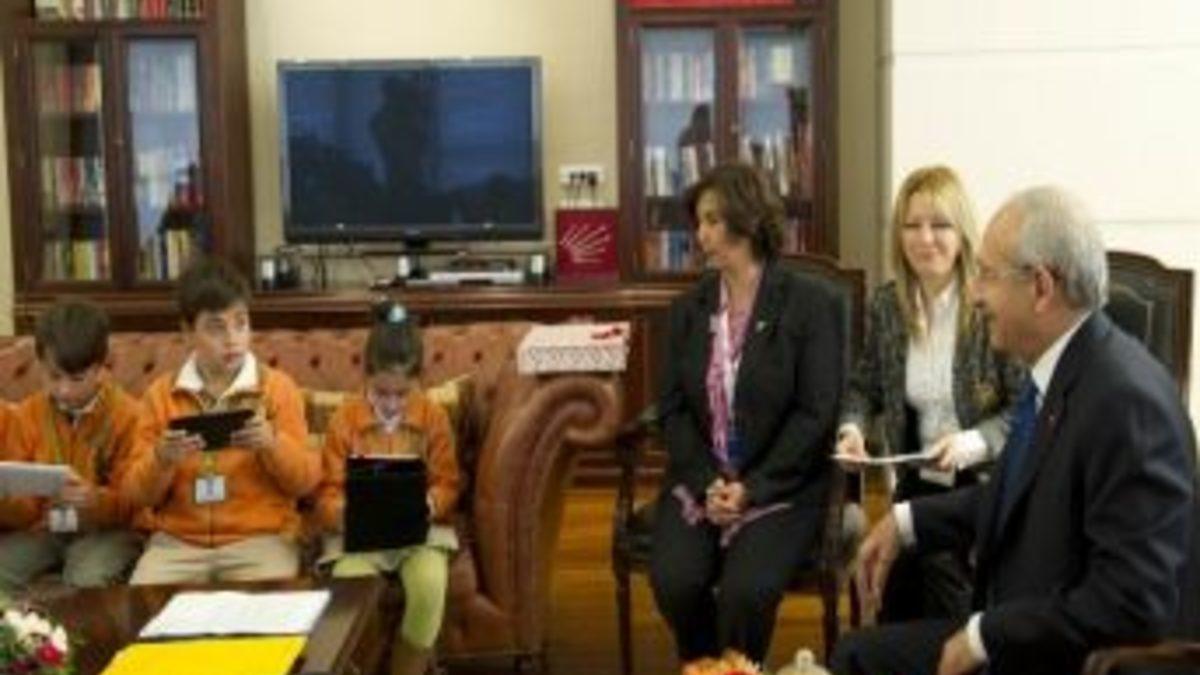 CHP Genel Başkanı Kemal Kılıçdaroğlu, Doğa Koleji’nin 'Doğa Muhabirleri' ile bir araya gelerek öğrencilerin sorularını cevapladı.Doğa Koleji’nin İlköğretim Okulu Bilim, Kültür ve Sanat Kolu üyesi 3. ve 4. sınıf öğrencisi doğa muhabirleri, hazırladıkları anket sorularını sormak ve cevaplarını birlikte değerlendirmek için CHP Genel Merkezi’nde Genel Başkan Kemal Kılıçdaroğlu’nu ziyaret etti. Doğa muhabirlerinin hazırladıkları anket sorularını cevaplayan Kılıçdaroğlu, öğretmenlere “Siz de zor sorular soruyorsunuz herhalde, öğrencileriniz de zor sorular hazırlamışlar” dedi.Doğa muhabiri arkadaşları adına bir açıklama yapan Eylül, "Yüce Atatürk'ün kurduğu partiyi ziyaret etmek, size çalışmalarınızda başarılar dilemek üzere geldik, bizi kabul ettiğiniz için çok teşekkür ediyoruz. Atatürk'ün ilkeleri doğrultusunda yaşayacağımız cumhuriyeti korumak ve kollamak için gösterdiğiniz çabanın başarılı olmasını istiyoruz. Bu çabalarınız için size çok teşekkür ederiz. Bu arada hazırladığımız anket sorularımıza da cevap istiyoruz" şeklinde konuştu.Eylül özellikle "Şimdiki zamanda çocuk olmak ister miydiniz? ", "Doğa'yı korumak için nasıl çalışmalar yapıyorsunuz?" sorularının bütün arkadaşlarının ortak sorusu olduğunu belirtti. Kılıçdaroğlu, soruları yanıtlayarak, öğretmenlerine çocukları çok zeki ve başarılı bulduğunu belirtti.Okul üniformalarıyla gelen öğrencilerle hatıra fotoğrafı çektiren Kılıçdaroğlu, çocuklara çikolata ve meyve suyu ikram etti.