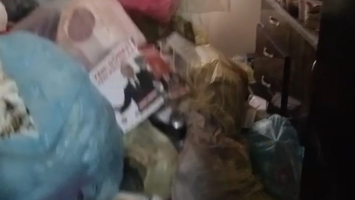 Odaların içinde biriken çöplerin yaşam alanlarını tamamen kapladığı, evin hijyen şartlarının tamamen ortadan kalktığı dikkat çekti.