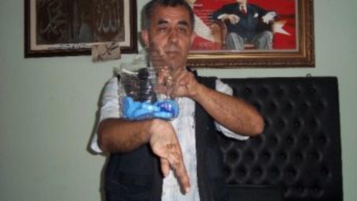 Kırıkkale'de, 2006 yılında haberden dönerken yük treninin çarpması sonucu engelli kalan gazeteci İbrahim Akpınar mavi kapak kampanyasına kapsamında engellilere destek için kapak topluyor.
