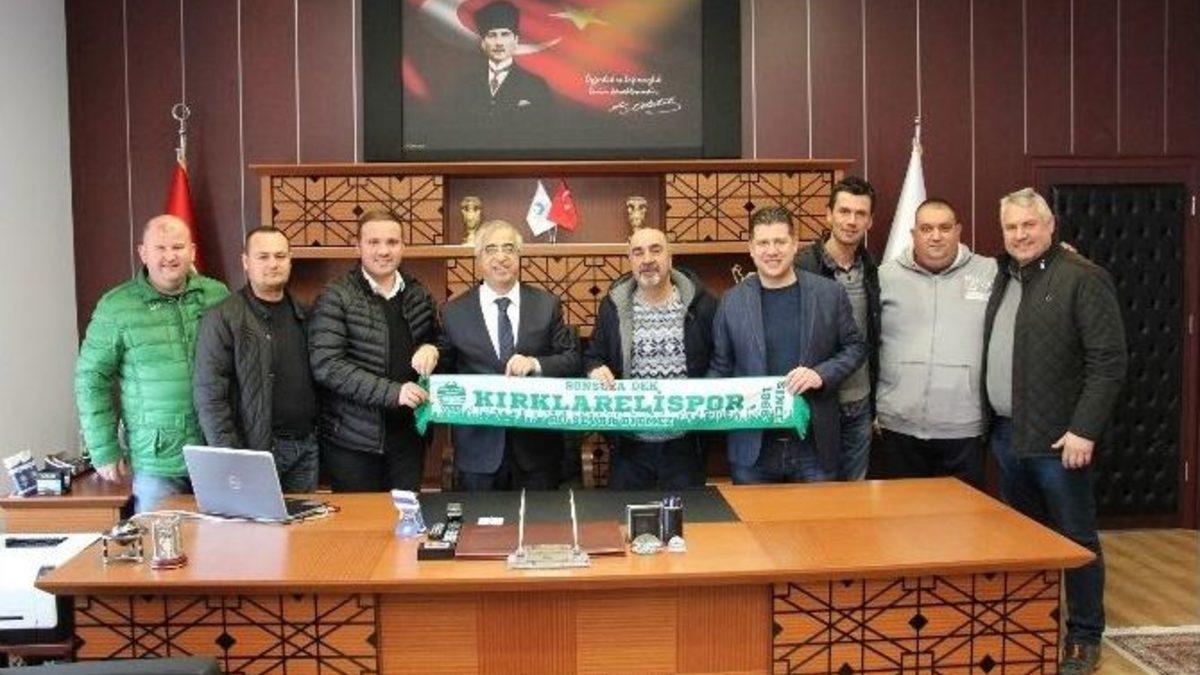 Kırklarelispor Kulübü Başkanı Volkan Can ve yönetim kurulu üyeleri, Kırklareli Üniversitesi Rektörü Prof. Dr. Bülent Şengörür’e hayırlı olsun ziyareti gerçekleştirdi.Rektörlük makamında gerçekleşen ziyarette, Başkan Volkan Can ve yönetim kurulu üyeleri, Rektör Şengörür’ü tebrik ederek yeni görevinde başarılar diledi. Ziyaretten duyduğu memnuniyeti dile getiren Rektör Şengörür, Kırklarelimizin tanıtımında Kırklarelispor’un önemli bir görev üstlendiğini belirterek, Kırklarelispor’un en kısa sürede daha iyi noktalara geleceğine inandığını söyledi. Şengörür, Kırklareli Üniversitesi olarak Kırklarelispor’a gerekli desteği vereceklerini de sözlerine ekledi.Ziyaretin sonunda Kırklarelispor Kulübü Başkanı Can, Rektör Şengörür’e, Kırklarelispor’un atkısını hediye etti.