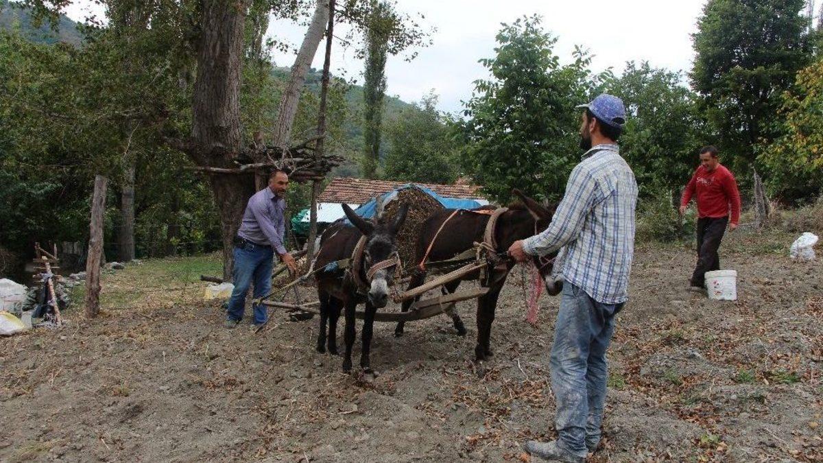 Samsun’un Vezirköprü ilçesinde bazı kırsal mahallelerde eşeklerin tarımda kullanımı arttı.İlçeye bağlı 40 kilometre uzaklıktaki Alanşeyhi Mahallesi’nde eşekler, birçok tarım işinin yanı sıra patates sökümünde de kullanılıyor. Yöre sakinleri, eşeklerin en ekonomik yöntem olduğu için tarımda onları tercih ettiklerini söyledi.Alanşeyhi Mahallesi sakinlerinden 44 yaşındaki Ahmet Tuzcu, öküz gücünden artık yararlanılmadığını ve tarihe karıştığını, traktörün giremediği ufak yamaç ve dar arazilerde eşeklerin daha başarılı olduğunu, günümüzde gücünden her alanda yararlanılan en verimli hayvanın eşekler olduğunu söyledi. Tuzcu, “Eşeklerle yük taşıyoruz, odun taşıyoruz, her türlü arazi şartlarında yararlanıyoruz. Mazot istemezler. Çok ekonomikler. Arpasını, samanını, suyunu ver yeter. Her işinizde yardımcı olur. Eşeklerin kullanıldığı tarım işlerinde maliyet düşüyor. Bugün de eşekleri koşarak sabanla patates söküyoruz. Çapa ile sökmekten daha kolay” diyerek eşeklerin ekonomideki maliyeti düşürdüğüne dikkat çekti.Eşeklerin neslinin tükenmekte olduğu bu dönemde herkesin yeniden eşek beslemeye yöneldiğini belirten Ahmet Tuzcu, eşeklerin değer kazandığını, beslenmesinin daha kolay olduğunu vurguladı. Eşeklerin masrafsız olduğunu da dile getiren Tuzcu, kırsal kesimde tarımda eşek devrinin başladığını kaydetti.