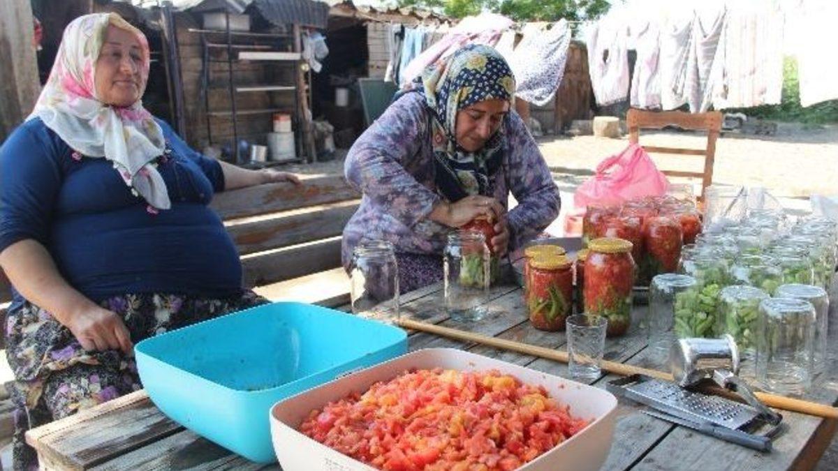 Yaz aylarının sonuna yaklaştığımız şu günlerde ev hanımları kış hazırlıklarını hummalı bir şekilde sürdürüyor. Gelişen teknoloji sonrası market raflarını süsleyen konserve ürünler yerine kendi ürettikleri sebze ve meyvelerin konservelerini hazırlayan Sakaryalı ev hanımları hem kışa hazırlık yapıyorlar hem de aile bütçelerine katkı sağlıyorlar.Sakarya’nın Adapazarı İlçesi Ozanlar Mahallesi’nde yaşayan Ünzile Coşkun gelini Fatma Coşkun ile Adana’dan gelen kız kardeşleri Tevhide Giden ve Ayşe Bale ile birlikte hummalı bir şekilde kış hazırlığı yapıyor. Kendi bahçesinde ektiği domates, biber, bamya, patlıcan, incir, fasulye, erik gibi sebze ve meyveleri kış için hazırlayan Sakaryalı kadınlar kış için reçel, komposto ve konserve ürünler yapıyorlar.Kendi bahçesinde yetiştirdiği ürünlerin doğal olduğunu anlatan Ünzile Coşkun, “Biz marketlerden hazır konserve almayız. Kendi ürünümüzü kendimiz yetiştirir kış için hazırlık yaparız. Kışın pazara inmeyiz. Domates-biber, domates-bamya, domates-fasulye, domates-biber-bamya konservelerini hazırlıyoruz. Malzemeleri güzelce doğradıktan sonra çiğ olarak cam kavanozları koyup üstüne tuz ve içine su koyar ağzını sıkıca kapatırız. Kapattığımız kavanozları kazanlarda kaynatırız ve kışa hazır hale gelirler. Kışın pazara inmeyiz. Hem yediğimiz ürünlerin sağlıklı olduğunu biliriz hem de aile bütçemize katkı sağlarız” dedi.Tarlasında yetiştirdiği patlıcanları da közleyerek şişelere koyduklarını anlatan Coşkun, “Kış geldiğinde tükettiğimiz bu konserveler sanki yeni yapılmış gibi olur. Sanki bahçeden yeni toplanmış gibi yeriz” şeklinde konuştu.Yine bahçesinde yetişen incirden reçel, erikten de komposto yapan kadınlar bu hazırlıklarının yaklaşık bir hafta sürdüğünü belirttiler.