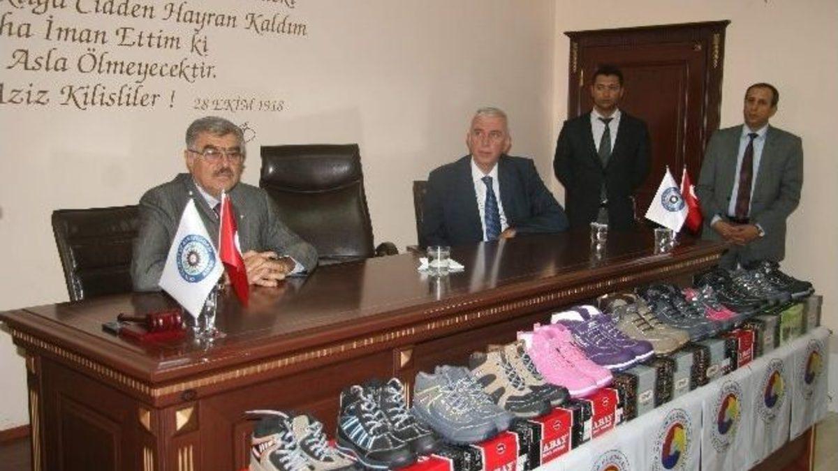 Kilis Ticaret ve Sanayi Odası (KİTSO) tarafından ilk ve orta dereceli okullarda okuyan bin 200 öğrenciye ayakkabı dağıtıldı.KİTSO Konferans Salonu’nda gerçekleştirilen ayakkabı dağıtım törenine; Vali Süleyman Tapsız, KİTSO Başkanı Mehmet Erdal Öndeş, İl Milli Eğitim Müdürü Hasan Aslan, KİTSO Meclis Başkanı Mehmet Özçiloğlu ve okul müdürleri katıldı.KİTSO Başkanı Mehmet Erdal Öndeş, yaklaşık 10 yıldır mutat hale getirdiklerini, ihtiyaç sahibi ilk ve ortaokul öğrencilerine yardım yaptıklarını belirterek, “İlköğretim okullarına ayni yardımlarımız uzun süreden beri devam etmektedir. Bu yardımlar bazen kırtasiye, bazen kışlık kaban veya mont, bazen ayakkabı olarak yapılmaktadır. Bu yıl da Yönetim Kurulumuzun almış olduğu karar gereği merkez ilkokul ve ortaokullarda okuyan ihtiyaç sahibi çocuklarımıza kışlık bot dağıtımı yapılması kararlaştırılmıştır. Dağıtacağımız bot sayısı bin 200 adettir. Gönül ister ki yoksul veya varlıklı Ancak kısıtlı imkanlar nedeni ile bu mümkün olamamaktadır. Sayının kısıtlı olması nedeni ile okullarımızın öğrenci sayısı ile dağıtılacak ayakkabı sayısına göre bir orantı kurularak okullara tahsis edilmiştir. Dağıtılacak olan botların giderleri Türkiye Odalar ve Borsalar Birliği’nden temin edilmiş olup, toplam tutarı 30 bin TL’dir. Bundan önce de Ramazan ayında yine Türkiye Odalar ve Borsalar Birliği’nden sağlanan 35 bin TL kaynak ile 700 fakir aileye pirinç, şeker, yağ, makarna ve şehriyeden oluşan gıda yardımı yapılmıştır. Bu yardımların yapılmasında bizlerden desteğini esirgemeyen Türkiye Odalar ve Borsalar Birliği Başkanı Sayın Rıfat Hisarcıklıoğlu’na huzurlarınızda teşekkür ederek minnet ve şükranlarımızı sunmayı bir borç bilirim” dedi.Kilis’in eğitimde göstermiş olduğu başarıların herkesi memnun ettiğini belirten Öndeş, “Bu başarının yakalanmasında en büyük katkı muhakkak ki Milli Eğitim camiasının ve onun değerli yöneticilerindir. Bizlere bu onuru yaşatan Milli Eğitime de yardımlarımız bundan sonra da devam edecektir. Yine Odalar ve Borsalar Birliği’nin katkıları ile Kilis’e yakışır bir fen lisesi kompleksi yaptırma çalışmalarımız devam etmektedir. Yapılacak olan fen lisesi için arsa temin edilmeye çalışılmaktadır. Sayın Valimiz bunun için yoğun çaba sarf etmektedir. Huzurlarınızda Sayın Valimize minnet ve şükranlarımızı sunarım. Arsa temini ile birlikte yeni Fen Lisemizin de inşaatına başlanılacaktır” diye konuştu.Vali Süleyman Tapsız ise yardımlarından dolayı KİTSO ile TOBB’ne teşekkür ederek, “Fakir öğrencilerimizin ihtiyaçlarının karşılanmasını önemsiyorum. Çünkü birçok öğrenci ekonomik nedenlerden dolayı giyse alamayabiliyor. Bu nedenle herkes üzerine düşeni yapmalıdır. Kilisli işadamlarını fakir öğrencilere daha fazla yardım etmeye çağırıyorum” şeklinde konuştu.Kilis’in eğitim alanında büyük başarılara imza attığını ifade eden Vali Tapsız, “Kilis’in üniversite sınavlarında başarısı ortadadır. Başarının devam etmesini istiyoruz. Burada velilerimize, öğretmenlerimize ve okul müdürlerini büyük görevler düşüyor. Geleceğimizin teminatı olan çocuklarımızın daha kaliteli eğitim alması için el birliği ile çalışmak zorundayız” ifadelerini kullandı.Yapılan konuşmalardan sonra okul müdürlerine ayakkabılar öğrencilere verilmek üzere takdim edildi.