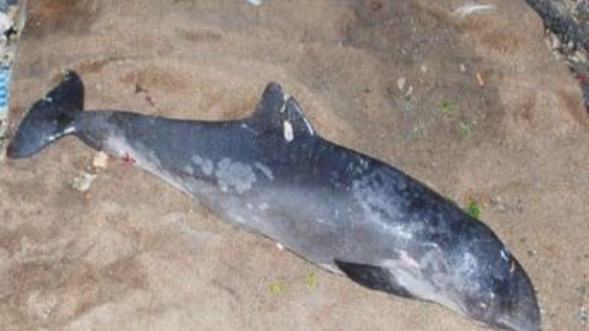 Bursa'nın Mudanya ilçesinde kıyıya vuran yavru yunusun zıpkınla vurulduğu iddia edildi.