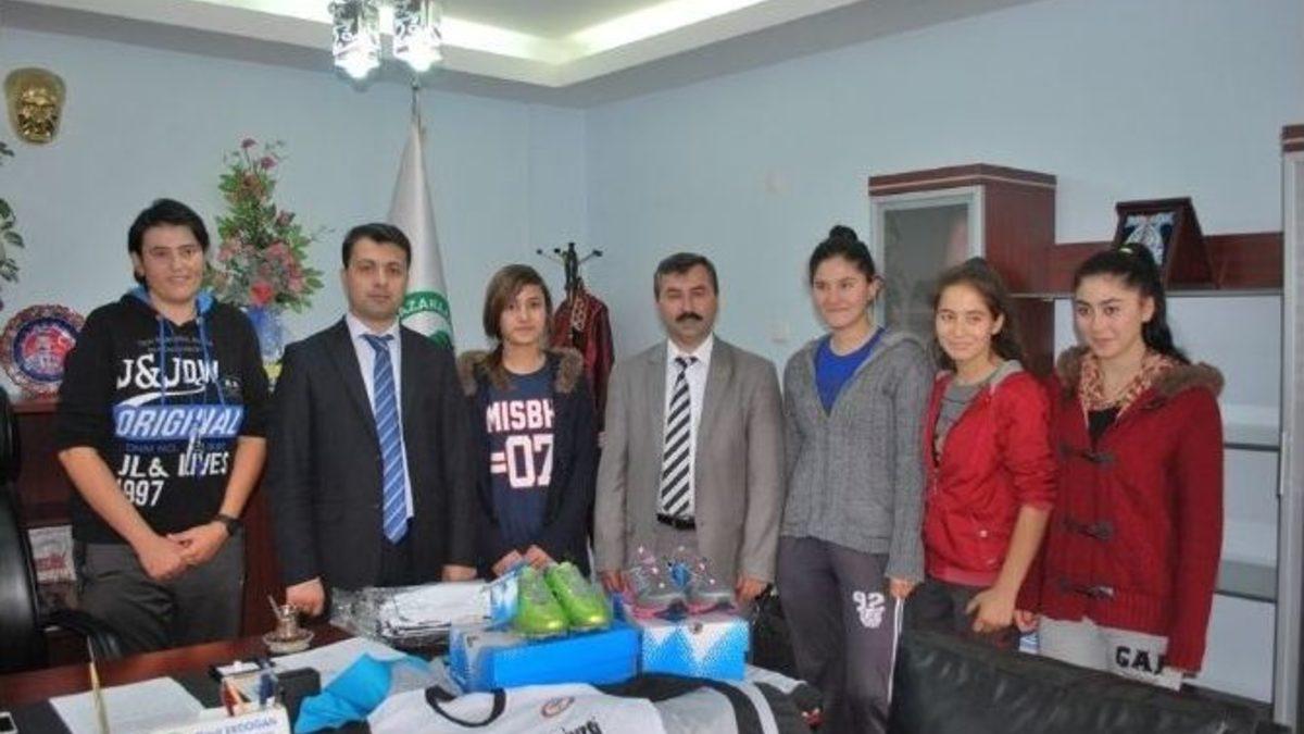 Kütahya’nın Pazarlar ilçesinde, kaymakamlık ve belediye işbirliğinde Pazarlar Çok Programlı Anadolu Lisesi Kız Futbol Takımı ve atletizm takımına forma ve ayakkabı desteği yapıldı.Pazarlar Belediye Başkanı Cavit Erdoğan’ın makamında yapılan törenle formalar ve ayakkabılar Çok Programlı Lisesi Kız Futbol takımına ve atletizm takımına verildi.Yapılan törene Pazarlar Kaymakamı Soner Bedir, ilçe Belediye Başkanı Cavit Erdoğan, İlçe Milli Eğitim Müdürü Kemal Sevgi, Çok Programlı Anadolu Lisesi Beden Eğitimi Öğretmeni Fatma Kurtoğlu, Çok Programlı Anadolu Lisesi kız futbol takımı ve atletizm takımı katıldı.Pazarlar Kaymakamlığı tarafından alınan ayakkabılar Kaymakam Soner Bedir tarafından, Pazarlar Belediyesi tarafından özel olarak yaptırılan formalar ise Belediye Başkanı Cavit Erdoğan tarafından Çok Programlı Anadolu Lisesi kız futbol takımı ve atletizm takımı verildi.Yapılan törende konuşan Pazarlar belediye başkanı Cavit Erdoğan, “ eğitime destek çerçevesinde Çok Programlı Anadolu Lisesi kız futbol takımı ve atletizm takımı için belediye olarak forma yaptırdık. Gençlerimizin eğitimde olduğu kadar sporda da başarılı olmalarını istiyoruz. Eğitime yapılan yatırım geleceğimize yapılan yatırımdı. İmkanlarımız çerçevesinde okullarımıza destek vermeye çalışacağız” dedi.Pazarlar Kaymakamı Soner Bedir ise, “Şiddetsiz ve küfürsüz bir ortamda spor maç yapmanızı diliyorum. Kaymakamlık olarak eğitime destek vermeye devam ediyoruz” dedi.(MB-EFE)