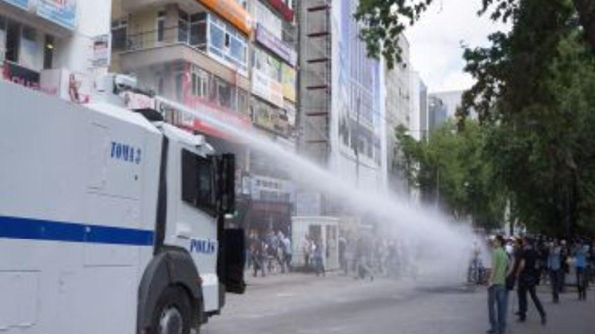 Ankara’nın Kızılay Meydanı bugün öğle vakti yine karıştı. Milli Müdafaa Caddesi üzerinde toplanan yaklaşık 500 kişilik bir grup, çevrede önlem alan polis ekiplerine taş ile saldırıda bulundu. Önce tazyikli su sıkan polis ekipleri, ardından göstericilere biber gazı ile müdahale etti. Olaylar nedeniyle çevreden geçmekte olan çok sayıda vatandaş sağa sola kaçıştı.