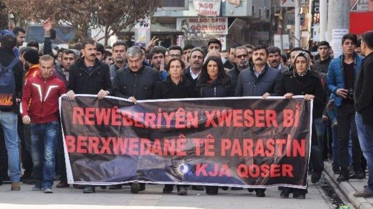 Mardin’in Kızıltepe ilçesinde izinsiz yürüyüş yapmak isteyen gruba, polis biber gazı ve tazyikli suyla müdahale etti.Kızıltepe’de, HDP ve DBP’nin çağrısı üzerine bir grup partili, Özgürlük Meydanı’nda bir araya geldi. Grup, bir süre sonra sloganlar atarak, yürüyüşe geçti. Polis, gruba dağılmaları yönünde uyarı yaptı. Ancak grup dağılmadı. Bunun üzerine polis, gruba biber gazı ve tazyikli suyla müdahale etti. Dağılan grup, bir süre sonra tekrar meydanda toplandı. Burada basın açıklaması yapan grup, tekrar yürüyüşe geçti. Polisin bir kez daha müdahale ettiği grup, ara sokaklara kaçarak, dağıldı.