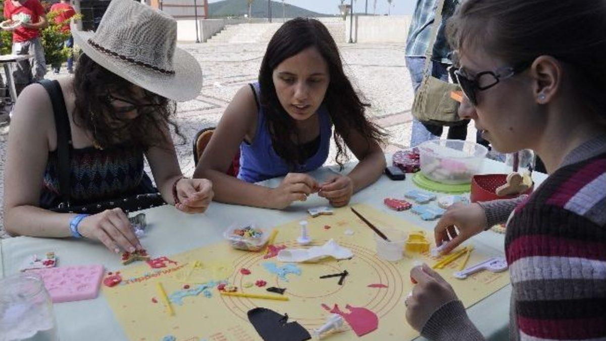 Kocaeli Üniversitesi’nde eğitim gören öğrenciler KO-MEK’in Türk Mutfağı branşı standında şeker hamurundan kurabiye yaparken, El Sanatları branşında model takı tasarlamayı, seramik ve ahşap boyamayı, filografi yapımını öğrenerek kendi ebrularını yapmanın da mutluluğunu yaşadılar.