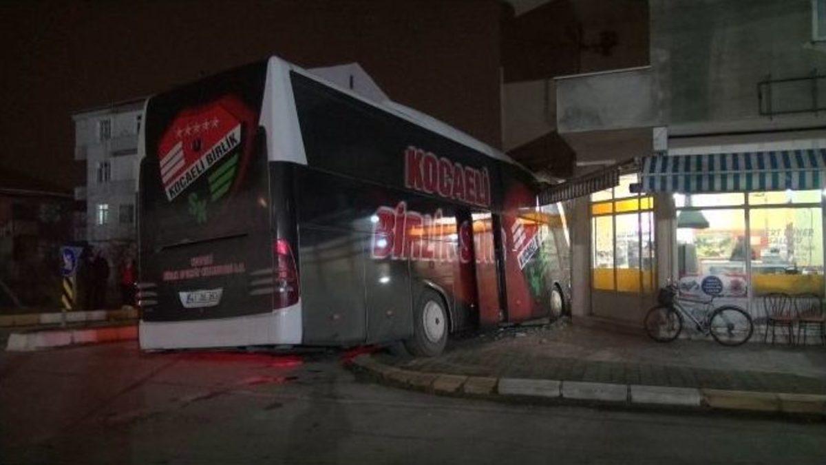 Spor Toto 2. Lig takımlarından Kocaeli Birlikspor’a ait takım otobüsü, freni boşalınca binaya çarparak durabildi. Kazadan hemen önce otobüsten inerek tesislere giren oyuncular büyük tehlike atlattı.Edinilen bilgiye göre, olay akşam saatlerinde Körfez ilçesi Esentepe Mahallesi’nde bulunan statta oynanacak maç için futbolcuları taşıyan Kocaeli Birlikspor’a ait 41 DS 053 plakalı takım otobüsü futbolcuları stada bırakarak, sürücüsü tarafından park alanına çekildikten sonra freninin boşalması sonucu sürüklenmeye başladı. Yokuş aşağıya doğru 150 metre sürüklenen otobüs yolun bitiminde bulunan 3 katlı bir binanın zemininde bulunan dönerci lokantasına çarparak durabildi. Kaza nedeniyle çıkan büyük bir sesin kendini evinden dışarı atan lokanta sahibi ve evde oturan vatandaşlar olayın şokunu uzun süre atlatamadılar. Kaza sırasında lokantanın önünde ve otobüsün içinde kimsenin bulunmaması ise büyük bir facianın önüne geçti.Kaza nedeniyle büyük korku yaşadıklarını dile getiren lokanta işletmecisi, kaza olduğu esnasında dükkanda 3 kişinin olduğunu, kimsenin yaralanmadığını fakat çıkan sesten çok korktuklarını belirtti. Kaza sonucu otobüste ve binada maddi hasar meydana gelirken polis olayla ilgili soruşturma başlattı.