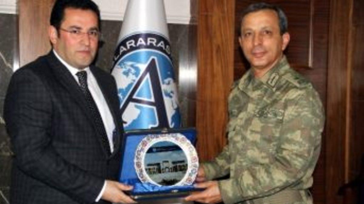 Antalya Garnizon Komutanı Tuğgeneral İrfan Can, Uluslararası Antalya Üniversitesi (UAÜ) Rektörü Prof. Dr. Cihat Göktepe’yi makamında ziyaret etti. Gaziantep’ten Antalya’ya terfi ederek gelen Garnizon Komutanı Can, Uluslararası Antalya Üniversitesi’nin mimarisini çok beğendiğini söyledi. “Kampüs çok güzel, güzel dizayn edilmiş.” diyen, öğrenciler ve fakülteler hakkında sorular yönelten Tuğgeneral İrfan Can’a, Rektör Prof. Göktepe açıklamalarda bulundu. Öğrencilerin üçte birinin yabancı olduğunu hatırlatan Cihat Göktepe, şunları söyledi: “Dünyanın en kaliteli üniversitelerinden gelen öğretim üyelerimizle, öğrencilerimizi geleceğe hazırlıyoruz. Kütüphaneden fitness salonuna, sinemadan spor tesislerine kadar öğrencilerimize rahat bir yaşam alanı imkanı sunuyoruz. Diğer yandan 114 MBA öğrencimiz mevcut, haziran ayında ilk mezunlarımız olacak.”Garnizon Komutanı Tuğgeneral İrfan Can ve UAÜ Rektörü Cihat Göktepe kaliteli eğitimin ülkenin geleceği olduğuna dair ortak görüşlerini paylaştılar. Prof. Göktepe günün anısına Tuğgeneral Can’a bir plaket takdim etti.(CE-