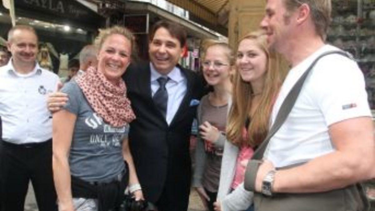 Konak Belediye Başkanı Hakan Tartan, alışveriş yapan turistlere çikolata ikramında bulunarak onlarla sohbet etti. Başkan Tartan, Amerika, İsviçre, Polonya gibi ülkelerden gelen turistlere gitmek istedikleri merkezlerin tarifini de yaptı.