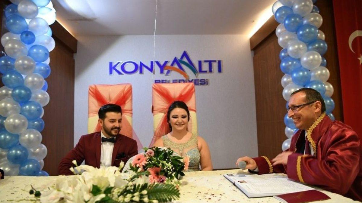 14 Şubat Sevgililer Günü’yle ilgili yoğun mesai harcanan Konyaaltı Belediyesi’nde 20 dakika da bir nikah kıyıldı.Konyaaltı Belediyesi, ‘14 Şubat’ta yoğun bir mesai harcadı. 14 Şubat Sevgililer Günü’nü özel kılmak isteyen çiftler aylar öncesinden gün alarak 14 Şubat Salı günü Konyaaltı Belediyesi’nin yolunu tuttu. Konyaaltı Belediyesi’nde bu özel günde 20 dakikada bir nikah kıyıldı. Konyaaltı Belediyesi bu özel günde 14 çiftin nikahına ev sahipliği yaptı.Konyaaltı Belediyesi, nikah işlemleri için gelen çiftlerin dışında, diğer işlemler için Belediyeye gelen vatandaşlara da ayrı bir sürpriz hazırladı. Belediye girişine kurulan ‘Konyaaltı’nda Aşk Başkadır’ yazılı platform ile bu özel günü fotoğraf çektirerek ölümsüzleştirmek isteyen vatandaşlar için de bir alan oluşturdu. Platform önünde öz çekim yapan vatandaşlar, bu anı da ölümsüz kıldılar.Konyaaltı Belediye Başkanı Muhitti Böcek’te 14 Şubat Sevgililer Günü’nde evlenen çiftleri tebrik ederek, “Bu özel günde yollarını birleştiren tüm çiftlere bir ömür boyu mutluluklar diliyorum . Bugün özel bir tarih. Bu günde nikah işlemleri için yoğun bir mesai harcadık. Ayrıca Belediyemiz girişine sevgilerini somutlaştırmak isteyen vatandaşlarımız için bir platform kurduk” dedi.