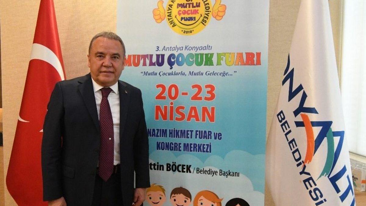 Konyaaltı Belediye Başkanı Muhittin Böcek, bu yıl üçüncüsünü düzenleyecekleri ’Mutlu Çocuk Fuarı’nı tanıttı.Konyaaltı Belediye Başkanı Muhittin Böcek, Nazım Hikmet Fuar Kongre Merkezi’nde bu yıl üçüncüsü düzenleyecek olan ’Mutlu Çocuk Fuarı’nın 20 Nisan’da başlayacağını söyledi. 4 gün sürecek fuarda 37 standın yer alacağını belirten Muhittin Böcek, çocukların birbirinden renkli etkinliklerle güzel zaman geçireceğini kaydetti.Toplantıda gazetecilerin sorularını da yanıtlayan Muhittin Böcek, 18 Nisan itibariyle belediye başkanlığında 20’nci yılını doldurduğunu hatırlattı. Bu süreçte arkasında soru işareti bırakmadığını kaydeden Başkan Böcek, Büyükşehir Belediye Başkanlığı’na adaylığı konusunda da "Önümüzdeki günlerde Antalya için güzel haberleri sizinle paylaşacağız" dedi.