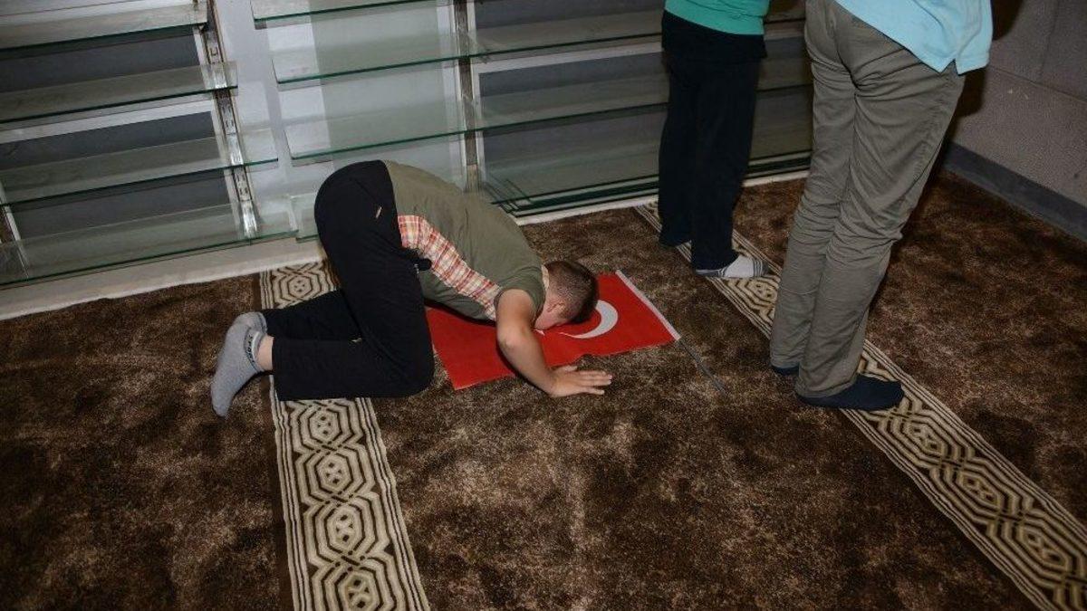 Konya Büyükşehir Belediyesinin 7-14 yaş aralığındaki çocuklara yönelik hayata geçirdiği “Güle Oynaya Camiye Gel” projesinde yer alan çocuklar, 15 Temmuz hain darbe girişiminin ikinci yıldönümünde sabah namazına Türk Bayraklarıyla gelerek şehitler, gaziler, ülke ve millet için dua etti.Konya Büyükşehir Belediyesi, Konya’nın 31 ilçesinde 7-14 yaş aralığındaki çocuklarda cami alışkanlığını oluşturmak için yürüttüğü “Güle Oynaya Camiye Gel” projesine katılan çocuklar anlamlı bir davranışa imza attı. Her sabah olduğu gibi bu sabah da camide bir araya gelerek namaz kılan çocuklar, 15 Temmuz hain darbe girişiminin ikinci yıldönümü dolayısıyla bu kez şehitler, gaziler, ülke ve millet için de dua etti. Sabah namazına Türk bayraklarıyla gelen çocuklar hep birlikte saf tuttuktan sonra minik ellerini semaya açarak dua etti.Başkan Altay’dan çocuklara kutlamaKonya Büyükşehir Belediye Başkanı Uğur İbrahim Altay da bu anlamlı davranışlarından dolayı çocukları tebrik etti. Başkan Altay, “Güle Oynaya Camiye Gel” projemize katılan yavrularımız sabah namazında şehitlerimiz, gazilerimiz, ülkemiz ve milletimiz için dua ettiler. Namaza ellerinde bayraklarla gelen çocuklarımız olduğu sürece hiç bir güç bizim bileğimizi bükemez” ifadelerini kullandı.Çocuklar da 15 Temmuz’un ikinci yıldönümünde yaşananları unutmamak ve unutturmamak için böyle bir şey yaptıklarını belirterek, ülkesinin ve milletinin parçalanmaması için canlarını feda eden şehitlerimiz ile gazilerimize minnettar olduklarını, bu fedakarlığın hiçbir zaman unutulmaması ve unutturulmaması gerektiğini söyledi.