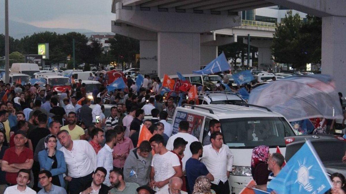 Konya’da, AK Parti seçmeni seçim sonuçlarını kutluyor.27. Dönem Milletvekilliği ve Cumhurbaşkanlığı seçim sonuçlarının açıklanmaya başlanmasının ardından seçmenler AK Parti Seçim Koordinasyon Merkezi önünde toplandı. Ellerinde Türk bayrağı ve AK Parti bayrakları alan vatandaşlar araç konvoyu yaparak kutlama yaptı. Parti müzikleri çalınırken kurulan büyük ekranda sonuçlar takip ediliyor.