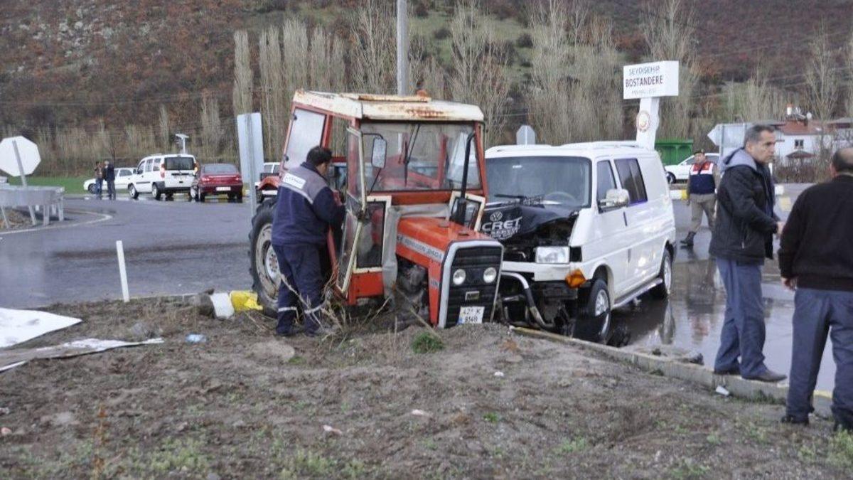 Konya’nın Seydişehir ilçesinde traktörle minibüsün çarpışması sonucu meydana gelen trafik kazasında 4 kişi yaralandı.Kaza, akşam saatlerinde Seydişehir-Konya Karayolunun 10. kilometresinde bulunan Bostandere Kavşağı’nda meydana geldi. Edinilen bilgiye göre, Süleyman B. (59) idaresindeki 42 K 9148 plakalı traktörle Recep B. yönetimindeki 42 KB 587 plakalı minibüs kavşakta çarpıştı. Kazada traktör sürücüsü Süleyman B. ile her iki araçta bulunan Ali S. (52), Makbule B.(59) ve Mehmet B. (36) yaralandı. Kazayı görenlerin haber vermesi üzerine olay yerine sevk edilen sağlık ekiplerinin ilk müdahalesinin ardından yaralılar ambulanslarla Seydişehir Devlet Hastane kaldırılarak tedavi altına alındı.Kazayla ilgili soruşturma başlatıldı.