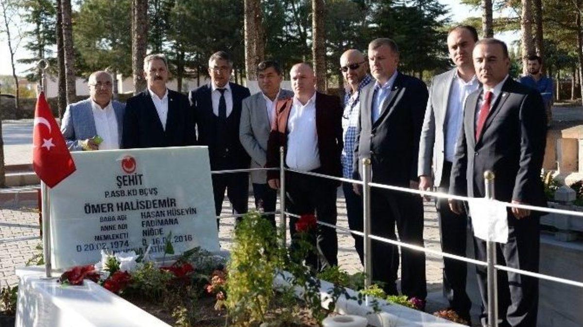 A. Konyaspor yönetim kurulu, 15 Temmuz darbe girişimi sırasında şehit olan vatan kahramanlarından Astsubay Ömer Halisdemir’in mezarını ziyaret etti.Kulübe ait otobüsle Niğde’nin Çukurkuyu Beldesine giden Konyaspor Kulüp Başkanı Ahmet Şan, yöneticiler Fatih Yılmaz, Ahmet Baydar, Ali Karaçayır, Abdullah Şanlı ve Ömer Zeren Çukurkuyu Belediye Başkanı İleri Koçak’ı ziyaret etti. Ahmet Şan, Ömer Halisdemir’in okul arkadaşı olan Çukurkuyu Belediye Başkanı İleri Koçak’ı, Halisdemir’in ailesiyle birlikte Konya’da oynanacak bir maçta misafir etmek istediklerini söyledi. Ziyaret çıkışında çocuklara Konyaspor ürünlerinden hediye eden yöneticiler Ömer Halisdemir’in mezarına geçti. Şehidin mezarı başında dua eden Konyasporlu yöneticiler şehidin ağabeyi Doğan Halisdemir ile bir süre sohbet etti.Ömer Halisdemir’in 15 Temmuz kalkışmasının sonlandırılması adına atılan ilk kıvılcımın sahibi olduğuna işaret eden Kulüp Başkanı Ahmet Şan, "Ne mutlu size böyle bir kardeşe sahipsiniz. Ne mutlu bize böyle bir kahraman vatan evladına sahibiz. Acınızı tüm ülke ve Türk halkı gibi paylaşıyoruz. Elimizden geleni her zaman yapacağımızdan şüpheniz olmasın. Sizleri en yakın ve uygun olduğunuz zamanda Konya’da misafir etmekten gurur ve onur duyacağız" dedi.Şehidin ağabeyi Doğan Halisdemir ise, vatanın bölünmez bütünlüğü adına şehit olan herkesin birer kahraman olduğunu belirterek, "Ömer ve diğerleri bu ülkenin selameti adına canlarını hiç düşünmeden feda ederek şehitlik mertebesine ulaştılar. Artık hainler bu ülkenin bölünmeyeceğini ve Türk halkının gücünü gördü. Vatan sağolsun. Bir değil binlerce Ömerler bu vatana feda olsun" diye konuştu.Ahmet Şan ziyarette Doğan Halisdemir’e Ömer Halisdemir yazılı 42 numaralı Konyaspor forması hediye etti.