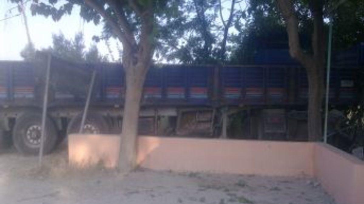 Osmaniye’nin Kadirli ilçesinde önüne çıkan köpeğe çarpmamak için direksiyonu kıran TIR şoförü bir evin bahçesine girerek durabildi.