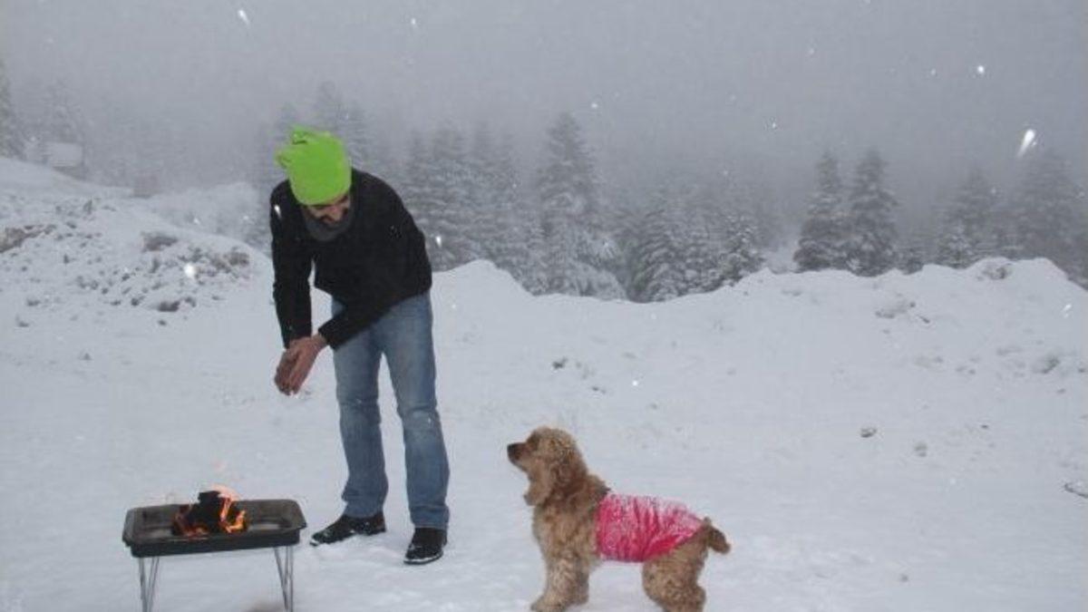 Türkiye'nin en önemli kış turizm merkezlerinden Uludağ'da vatandaşlar tatilin tadını çıkartıyor. Sömestre ve hafta sonu tatilini fırsat bilen günü birlikçiler karların üstünde mangal yapmanın keyfini çıkardı. Köpeğiyle beraber İstanbul’dan Bursa’ya gelen ve karda mangal yapan Volkan Uzun, Uludağ’ın her zamankinden daha güzel olduğunu, iki günlük tatilini geçirmek için Bursa’ya geldiğini söyledi. İnsanın kendi pişirdiği yemeğin daha lezzetli olduğunu, bu sebeple mangal yaptığını ifade eden Uzun, yanından köpeğini de ayırmadı.