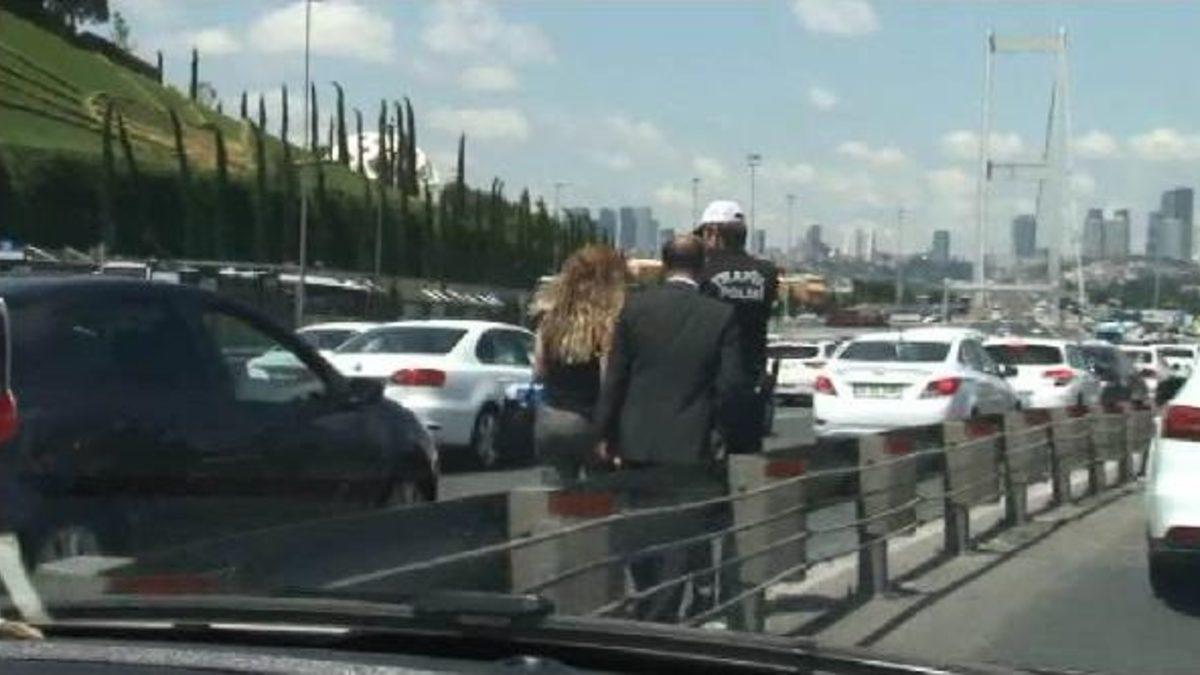Cumhurbaşkanı Erdoğan'ın konvoyu 15 Temmuz Şehitler Köprüsüne girerken otoyol kenarında yürüyen biri kadın iki kişi polisin dikkatini çekti. Bir polis memuru yanları gidip kimliklerini sordu. Polisin eşlik ettiği iki kişi yol dışına çıkarıldı. Metrobüse binmek için sıkışık trafikte araçtan indiklerini söyleyen iki kişi serbest bırakıldı.