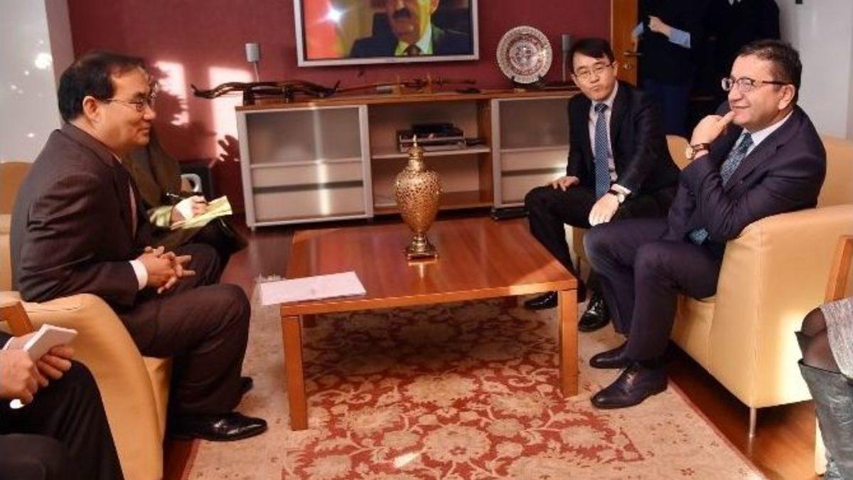 Kore Cumhuriyeti Türkiye Büyükelçisi Cho Yun-soo, Ankara’daki büyükelçiliklerle yakın ilişki içerisinde bulunan Altındağ Belediye Başkanı Dr. Veysel Tiryaki’yi ziyaret etti.Başkan Tiryaki, Cho Yun-soo’yu beraberindeki Savunma Ataşesi Jaesic Park ve Büyükelçi Müsteşarı Dong-Woo Cho ile birlikte ağırladı. Büyükelçi Cho Yun-soo, görüşmede Türkiye Cumhuriyetinin kendileri için önemine vurgu yaptı."Kore şehitleri ve gazilerini unutmadık"Kore Savaşı’nda şehit ve gazi olan Türk askerlerini aradan geçen yıllara rağmen unutmadıklarını ve her zaman minnetle andıklarını ifade eden Büyükelçi Cho Yun-soo, Altındağ sınırları içerisinde bulunan Kore Parkı’nı bu vefa duygusuyla yenilemek istediklerini Başkan Tiryaki’ye iletti. Altındağ’da bulunan bir parka ’Kore Parkı’ isminin verilmesinden büyük mutluluk duyduklarını ifade eden Cho Yun-soo, "Aramızdaki dostluk ve Türk milletine olan vefa duygumuz nedeniyle, bu parkı sizin de işbirliğinizle yenilemek ve bir anıt park haline getirmek istiyoruz" dedi. Büyükelçinin teklifini memnuniyetle karşılayan Başkan Tiryaki ise ne gerekiyorsa yapılacağını söyledi.Altındağ Belediyesiyle her zaman olumlu işbirliği içerisinde olduklarını da ifade eden Büyükelçi Cho Yun-soo, nezaketinden ve misafirperverliğinden dolayı Başkan Tiryaki’ye teşekkür etti.