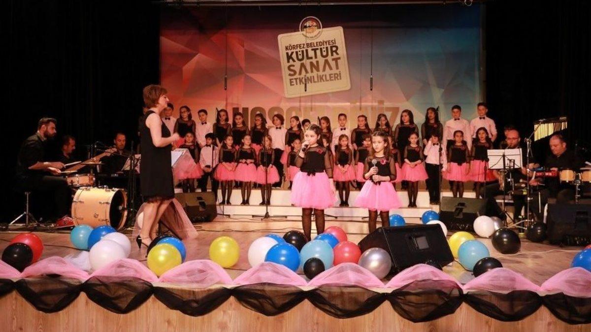 Körfez Belediyesi Çocuk Korosu performansıyla izleyenleri mest etti.Körfez Belediyesi, 23 Nisan etkinlikleri kapsamında Tütünçiftlik Kültür Merkezinde muhteşem bir etkinliğe imza attı. Körfez Belediyesi Çocuk Korosu tarafından Tütünçiftlik Kültür Merkezinde konser düzenlendi. Konsere Körfez Belediye Başkan Yardımcısı Selattin Kabadayıoğlu, Kültür ve Sosyal İşler Müdürü Mücahit Bulut, Belediye Meclis üyeleri ve çok sayıda davetli katıldı. Şef Hülya Eker ve Murat Kiremitçi’nin önderliğinde uzun zamandır çalışma yürüten koro, performansıyla beğeni topladı. Çocuk şarkılarıyla başlayan konser, Türk Sanat Müziği’nin unutulmaz eserleri ve pop müziğin sevilen şarkılarıyla devam etti. Vatandaşlar da ellerinde Türk bayrakları ile şarkılara eşlik etti.