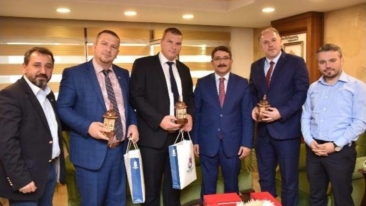 Şehzadeler Belediye Başkanı Ömer Faruk Çelik, Kosova Demokratik Türk Partisi ve Kosova Meclis Başkan Yardımcısı Fikrim Damka ve beraberindeki heyeti Şehzadeler Belediyesinde misafir etti. Yapılan ziyaretten duyduğu memnuniyeti ifade eden Başkan Çelik, “Kosova bizim gönül coğrafyamızda yer alan nadide köşelerden bir tanesidir” dedi.Bir dizi ziyaretlerde bulunmak üzere Manisa’ ya gelen Kosova Demokratik Türk Partisi ve Kosova Meclis Başkan Yardımcısı Fikrim Damka ve beraberindeki işadamları Şehzadeler Belediye Başkanı Ömer Faruk Çelik’ i makamında ziyaret ettiler. Kosova’dan gelen heyeti Şehzadeler Belediyesinde ağırlamaktan büyük bir mutluluk duyduğunu ifade eden Şehzadeler Belediye Başkanı Ömer Faruk Çelik, “Gönül coğrafyamızın nadide köşelerinden biri olan Kosova’dan gelen misafirlerimizi Şehzadeler’imizde ağırlıyoruz. Kosova, Murat Hüdavendigar’ın türbesinin bulunduğu ve her şehrinde Türkiye’nin, Osmanlı’nın ve tarihimizin sevildiği sevgi ve saygıyla karşılandığımız, kucaklandığımız Balkanlar’ın güzel ülkelerinden birisi çok değerli Meclis Başkan Yardımcımız ve değerli iş adamlarımız bugün belediyemizi şereflendirdiler ben kendilerine kendi evinize hoş geldiniz diyorum. Biz Kosovalıları hiç ayrı görmüyoruz. Kendimizden bir parça olarak görüyoruz. Çok iyi biliyorum ki onlarda bizi aynı şekilde görüyorlar. İnşallah aramızdaki bu sevgi ve muhabbet ekonomik olarak daha da artarak devam eder. Balkanların en güzel köşelerinden biri olan Kosova’yı görmeyen tüm hemşerilerimize oralara gitmelerini oraları görmelerini tavsiye ediyorum” dedi.“Kardeşler arasındaki mesafeleri kısaltmanın çabasında olmalıyız”Şehzadeler Belediye Başkanı Ömer Faruk Çelik’e Kosova’da tanışma fırsatı yakaladığını ifade eden Kosova Demokratik Türk Partisi ve Kosova Meclis Başkan Yardımcısı Fikrim Damka, “Öncelikle Manisa’da, Şehzadeler Belediyesinde bulunmaktan büyük bir onur duyduğumu ifade etmek isterim. Bizlere zaman ayırdığı için değerli Belediye Başkanımıza çok teşekkür ediyorum. Belediye Başkanımız ile daha önce Kosova’da görüşme fırsatımız olmuştu. Çok fazla sohbet etme şansımız olmamıştı ancak bugün daha fazla vaktimiz olacak. Kosova ve Türkiye arasında özellikle Belediye arasında nasıl bir işbirliği yapılabilir, bu kardeşler arasındaki uzaklık mesafesini nasıl daha da kısalta biliriz bunun arayışı içerisinde olacağız. Manisa’da Balkanlardan çok vatandaşımız yaşamaktadır. Hepsi de kendi vatanında yaşıyorlar. Çünkü bizlerin ayrı gayrısı yoktur. Bundan sonra bu ziyaretlerimiz daha da sıklaşacaktır. Hem ticari açıdan hem de Kültürel açıdan farklı projelerimizin olacağından şüphemiz yok.” dedi.“Türkiye bizim vatanımız”Kosova’da yaşayan Türkler olarak Türkiye’ye öz vatan olarak gördüklerini ifade eden Kosovalı İşadamı Şevket Damka, “Şehzadeler Belediye Başkanımız ile ikinci defa görüşmemiz bugüne nasip oldu. Türkiye bizlerin vatanıdır. Biz Kosova’da Balkanlar’da yaşayanlar olarak Türkiye’yi kendi vatanımız olarak görüyoruz. Bizler için Kosova Türkiye Devleti sınırları içerisinde bir şehir gibidir. Bugün buruda olmaktan gerçekten çok mutluyuz. İnşallah iki belediye arasında güzel iş birliklerine imza atacağız ve sık sık bir araya geleceğiz. Yugoslavya dönemlerinde Manisa’ya göç etmiş olan vatandaşlarımız var. Onlar da burada kendi vatanlarındadır. Türkiye’de Türk olmak kolay bir şeydir ama Balkanlarda Türk olmak gerçekten de zordur.Bizler Balkanlarda Türk’üz demek istediğimizde bazı bedeller ödüyoruz. Tekrardan bizleri böylesine sıcak bir şekilde misafir ettikleri için değerli Şehzadeler Belediye Başkanımıza çok teşekkür ediyorum” şeklinde konuştu.