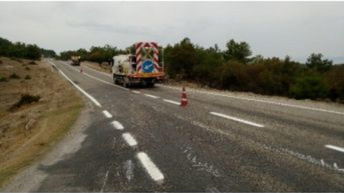 Çanakkale’nin Lapseki ilçesinden geçen eski Biga-Lapseki kara yolu güzergahında bulunan köy yollarına çizgi ve işaretleme...