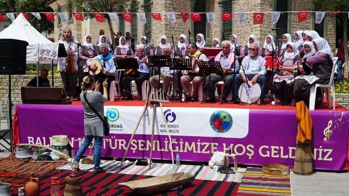 Tekirdağ Büyükşehir Belediyesi, Tekirdağ Bulgaristan Göçmenleri Derneği ve Tekirdağ Büyükşehir Belediyesi Kent Konseyi iş birliğinde düzenlenen Balkan Kültür Şenliği’nde sahneye çıkan köylü kadınlardan oluşan ‘Lüleburgaz Ertuğrul köyü Cumhuriyet Kadınları Korosu’ söyledikleri mani ve şarkılarla izleyenlerin beğenisini kazandı.Süleymanpaşa ilçesi Ticaret Meydanı’nda düzenlenen etkinlikte, yöresel kıyafetler giyen ve yaşları 40 ile 82 arasında değişen köylü kadınlardan oluşan ‘Lüleburgaz Ertuğrul köyü Cumhuriyet Kadınları Korosu’ bir yandan yapağı ipi yapımı, keşkek, bulgur yapımı gibi çeşitli geleneksel öğeler ile Trakya kültürünü yansıtarak, bir yandan söyledikleri mani ve şarkılar ile izleyenlerden alkış topladı.Koronun koordinatörü emekli müzik öğretmeni Şükran Akdeniz gazetecilere yaptığı açıklamada, 20 kişilik köylü kadınlardan oluşan bir ekip olduklarını, kadınların ilkokul mezunu ve normalde hayvancılık yaparak geçimlerini sağladıklarını belirterek, “Burada yaptığımız etkinlikte köylerde kadınların yaptığı imeceyi sahneledik, eskiden kadınlar lamba ışığında, yapaklar diderdi, örerdi, mısır sayardı, buğday ayıklanırdı, o buğdaylardan da keşkek yapılırdı ama hep imece usulü. Köylüler toplanır birbirine yardım ederdi ve bunu da yaparlarken mani söylerlerdi. Onları yansıtmak istedik” dedi.Sosyal medyada ilgi görünce köyleri turistik olduKoronun sosyal medya hesaplarında sıkça tıklanmasının ardından köylerine de ilginin arttığını anlatan Şükran Akdeniz, “Kadınlarımızın memleketin bütünlüğü ile alakalı söylediği şiir ve şarkıları kaydedip sosyal medyada paylaştık. 5 bin paylaşım alınca kim bu Ertuğrul Köylüler diye merak edenler köyümüze gelmeye başladı. Şimdi otobüsler ile gelip köyü ziyaret ediyorlar. Köyümüzde yıkılmaya yüz tutan bir ilkokulu Kültür Evi’ne dönüştürdük. Şimdi onu ziyarete geliyorlar ve köylülerimizde ziyaretçilere lokma, ayran satarak bütçelerine katkı sağlıyorlar” ifadelerini kullandı.Köylü kadınlardan oluşan ‘Lüleburgaz Ertuğrul köyü Cumhuriyet Kadınları Korosu’ sahneledikleri gösteri ve şarkıların ardından Tekirdağ’dan ayrıldı.
