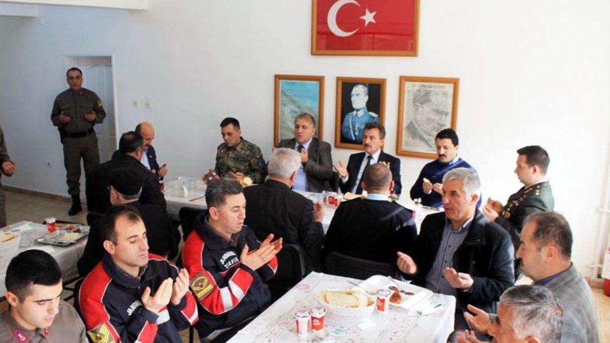Bursa’nın Yenişehir ilçesine bağlı Burcun köyü sakinleri, İlçe Jandarma Komutanlığı’nda görev yapan askerlere, Afrin’de savaşan askerler onuruna yemek verdi.Burcun köyü Muhtarı Hayri Alper ve köylüler tarafından İlçe Jandarma Komutanlığı’nda verilen yemeğe ilçe protokolü katıldı. Yenişehir Belediye Başkanı Süleyman Çelik, “Afrin’de Zeytin Dalı Harekâtı’nda mücadele veren askerlere destek olmak, ilçe protokolü ile askerlerimizi bir araya getirerek birlik ve beraberliğimize vurgu yapmak maksadıyla bu yemeğe katıldık. Bu anlamlı organizasyonu düzenleyen Burcun köyü muhtarımıza ve emeği geçenlere teşekkür ediyorum” diye konuştu.Yemeğe Yenişehir Kaymakamı Suat Seyitoğlu, Garnizon Komutanı Albay Hakan Cirit, Belediye Başkanı Süleyman Çelik, Yenişehir Cumhuriyet Başsavcısı Veysi Oktay, İlçe Jandarma Komutanı Üstteğmen Burak Dural, İlçe Emniyet Müdürü Bülent Albayrak Muhtarlar Derneği Başkanı Enver Zengin, Ziraat Odası Başkanı Sadi Aktaş, Bursa Yenişehirliler Derneği Başkanı İsmail Eroğlu, muhtarlar ve askerler katıldı.