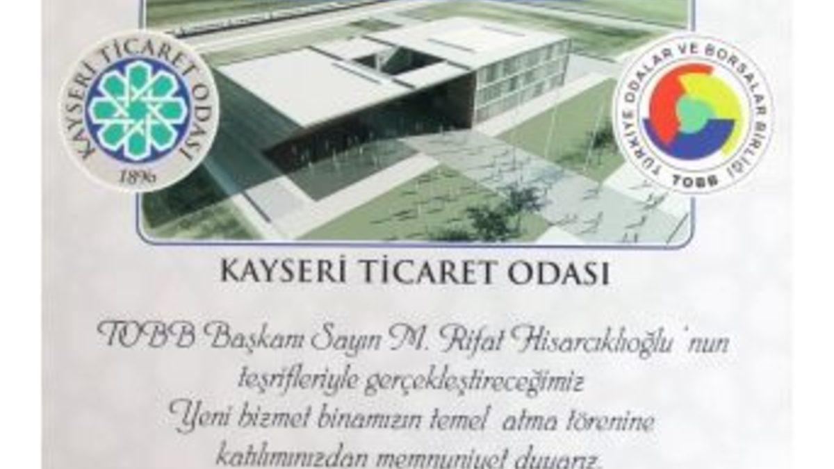 Kayseri Ticaret Odası’nın (KTO) yeni hizmet binası temel atma töreni, TOBB Başkanı Rıfat Hisarcıklıoğlu’nun katılımıyla yapılacak.KTO’nun Çevre Yolu üzerinde yapılacak olan yeni hizmet binası temel atma töreninin 14 Ağustos saat 15:00’de yapılacağı ve törene TOBB Başkanı M. Rıfat Hisarcıklıoğlu’nun da katılacağı bildirildi.