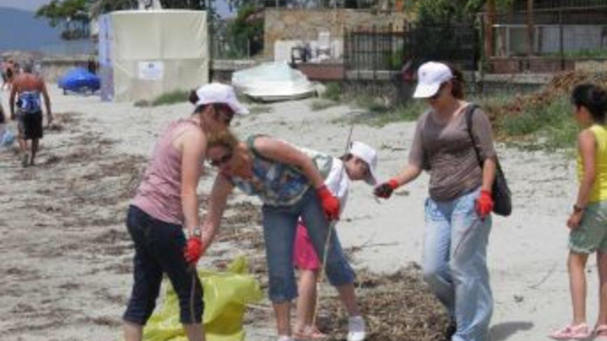 Çanakkale Güzelyalı sahilinde 4 kilometrelik plaj şeridi temizlendi.