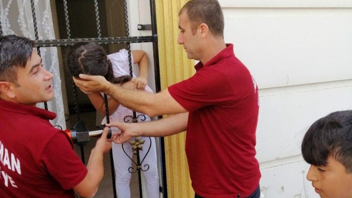Adıyaman’da kafasını pencere korkuluklarının demirine sıkıştıran küçük kızı itfaiye kurtardı.
