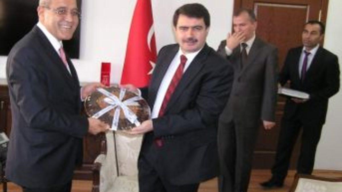 Öte yandan, Vali Şahin tarafından Arıcı'ya tepside kuru kayısı hediye edildi.