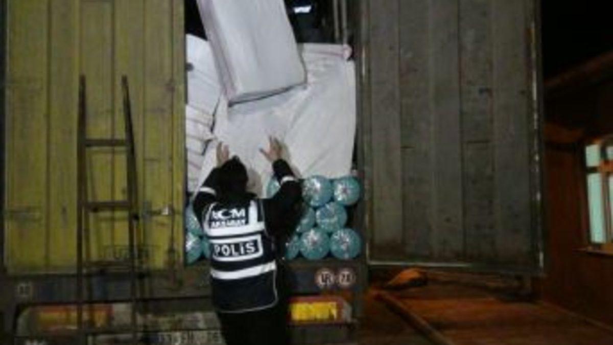 Aksaray’da polisin şüphe üzerine durdurduğu kumaş dolu TIR’da 44 bin paket gümrük kaçağı sigara yakalandı