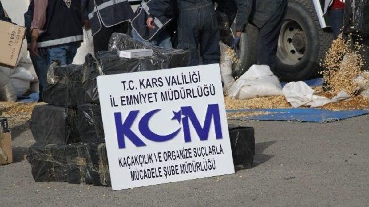 Kars’ta polisin kaçakçılara yönelik düzenlediği operasyonda kuruyemiş kabuklarıyla dolu kamyonda yapılan aramada 78 bin 920 paket kaçak sigara ele geçirildi.Kentte sigara kaçakçılarına yönelik polisin yürüttüğü operasyonlar aralıksız devam ediyor. Her yolu deneyen kaçakçılar bu sefer kuruyemiş kabuklarıyla dolu çuvalların içerisine sigara yerleştirdi. Kuruyemiş kabuklarıyla dolu kamyona operasyon düzenleyen polis, kaçakçıların oyununu bozdu. Polisin kamyonda yaptığı aramada kuruyemiş çuvallarının içerisine konmuş 78 bin 920 paket kaçak sigara ele geçirdi. Olayla ilgili şüpheli iki kişi gözaltına alındı.Edinilen bilgilere göre, İl Emniyet Müdürlüğü Kaçakçılık ve Organize Suçlarla Mücadele (KOM) Şube Müdürlüğü’nce, kaçakçılıkla mücadele kapsamında yürütülen çalışmalarda; İsmail Hakkı Alaca Bulvarı üzerinde durdurulan kamyonda yapılan aramada, kuruyemiş kabukları ile dolu çuvallar içerisine saklanmış vaziyette çeşitli markalarda 78 bin 920 paket gümrük kaçağı sigara ele geçirildi. Olayla ilgili olarak M.K. (50) ve T.D. (31) isimli şüpheliler yakalanarak gözaltına alındı. Olayla adli tahkikata başlatıldı.Öte yandan, kuruyemiş kabuklarıyla dolu çuvallar içerisine sağlanmış şekilde ele geçirilen 78 bin 920 paket kaçak sigara, Kars’ta tek olayda ele geçirilen en yüksek miktar oldu.Konuyla ilgili Emniyet Müdürlüğü’nden yapılan yazılı açıklamada, “Ekonomide kayıt dışılığı artıran, vergi adaletini bozan, piyasalarda adil rekabeti ortadan kaldıran ve insan sağlığını tehdit eden sigara kaçakçılığıyla mücadelemiz, kararlılıkla devam edecektir” ifadelerine yer verildi.
