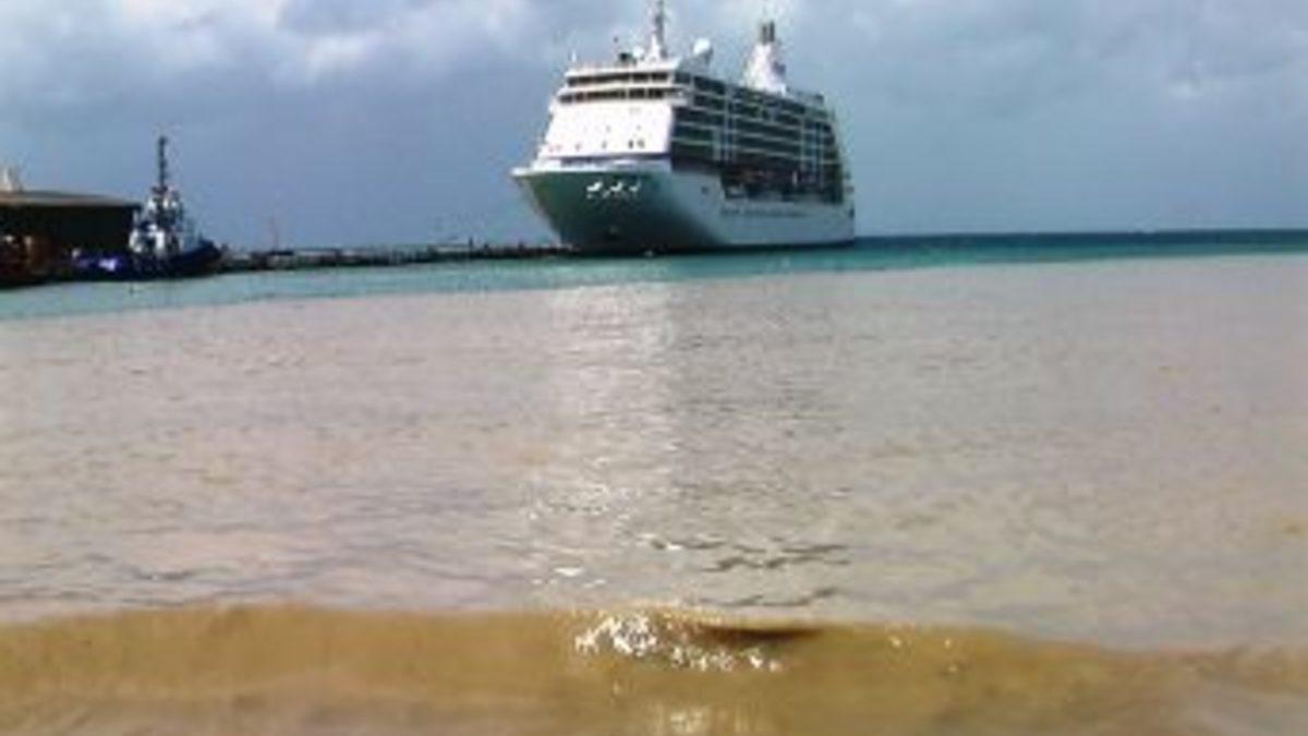 Aydın'ın Kuşadası ilçesinde dün (17 Nisan) gece başlayan ve bugün de zaman zaman devam eden fırtına ve sağanak yağmur, Kuşadası Körfezi'ni çamurla doldurdu. Kuşadası Limanı'na sabah saatlerinde iki römorkör yardımıyla zorla yanaşan Seven Seas Voyager adlı yolcu gemisine kadar, karadan yaklaşık 3 km.'lik alan çamura bulanmış gibi görünüyor.