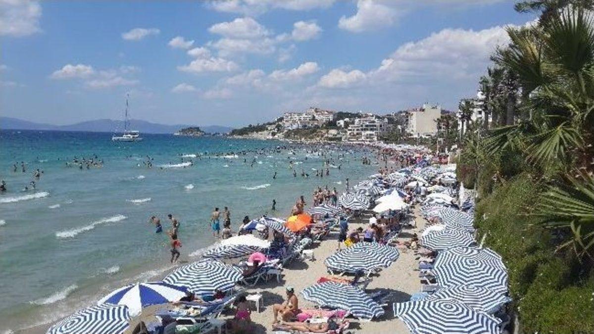 Aydın’ın Kuşadası ilçesinde sıcakların artmasıyla birlikte vatandaşlar ve turistler plajları doldurdu.Kuşadası’nda 34 dereceyi aşan sıcaklardan bunalan vatandaşlar ve turistler plajlara akın etti. Deniz suyu sıcaklığının 20 derece civarında olduğu ilçede en çok rağbet gören plaj ise Kadınlar Plajı oldu. Sıcaklardan bunalıp Kadınlar Plajı’na koşan Kuşadalılar ile yerli ve yabancı tatilciler, deniz, kum ve güneşin keyfini çıkarttı. Kadınlar Plajı’nın yanı sıra, halk plajları, Banyolar Plajı, Kuştur Plajı ile Karaova ve Kadı Kalesi mahallelerindeki plajlar ve Dilek Yarımadası Milli Parkı plajı da sıcak havadan bunalanların tercih ettiği yerler arasında yer aldı.