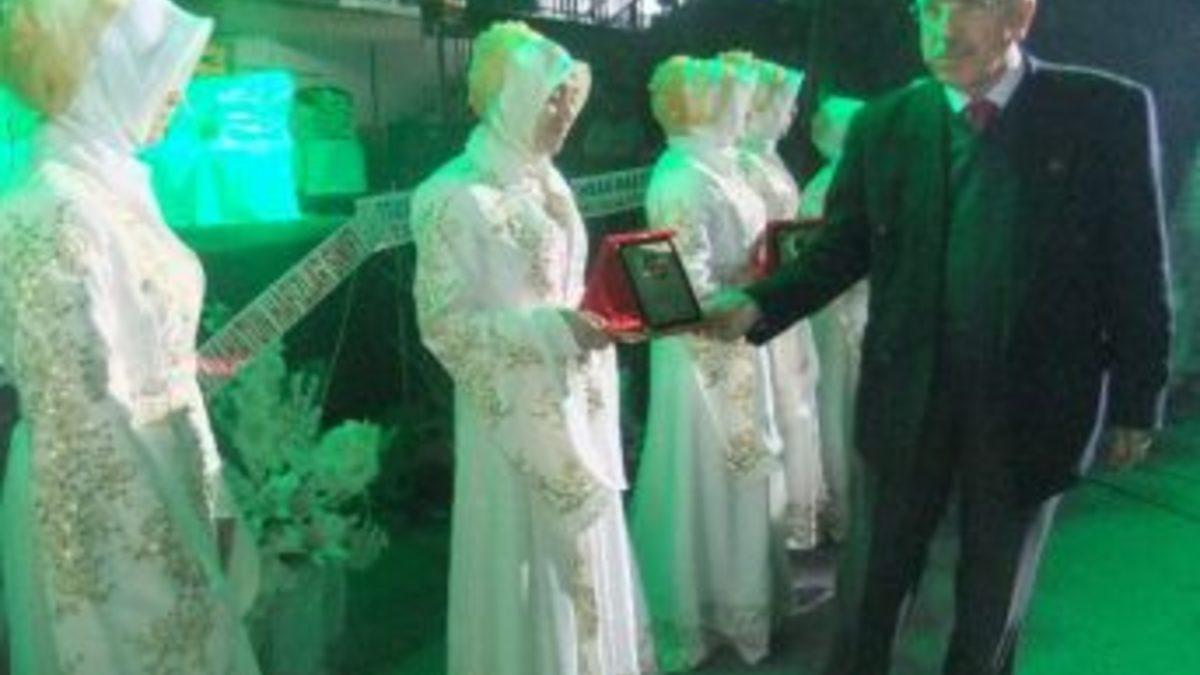Üskülüplü, tören sonrası hafızlık eğitimini tamamlayan 25 kız öğrenciye plaket takdim etti.