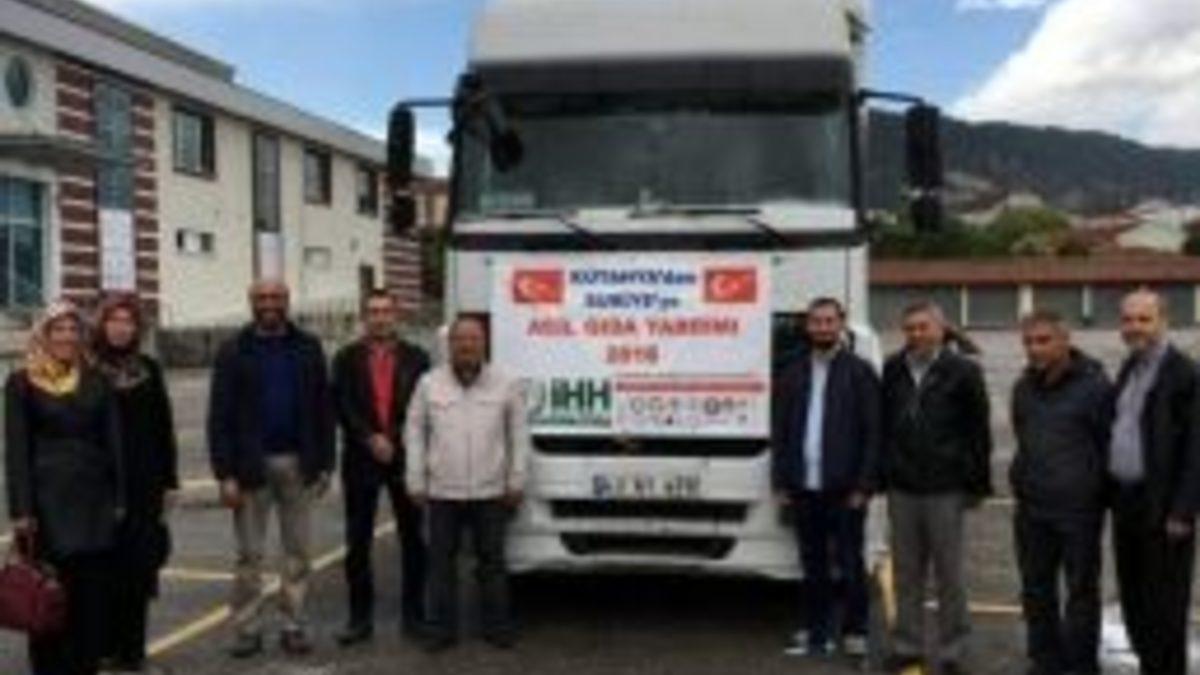 İHH Kütahya İnsani Yardım Derneği Şube Başkanı Mustafa Yenipazar, Kütahya’dan 21. yardım TIR’ını bölgeye gönderdiklerini ifade etti.Suriye’de savaşın hız kesmeden sürdüğünü belirten Yenipazar, "Halep’te insanlığın tarihinde kara bir sayfa olarak yazılacak günler yaşanmaktadır. Hem ülke içi göçler hem ülke dışına zorunluluk gerektiren göçler Suriye bölgesindeki, hangi ırk, din veya mesebe ait olursa olsun tüm insanları çaresiz, korunmasız, aç ve her şeye muhtac duruma düşürmektedir. Bu savaştan en çok bölgede yaşayan masum insanlar olumsuz etkilenmekte ve hayat oradaki çocuklar, yaşlılar ve kadınlar için çekilmez bir çile haline dönüşmektedir.Suriye bölgesinde bu süreç uzadıkça konuya duyarlı insanlarımızın da oradaki ihtiyaç sahiplerine olan ilgi ve alakaları her geçen gün maalesef azalmaktadır. İhtiyaçlar artarak devam etmekte fakat maalesef ilgi ve alakamız azalarak devam etmektedir. Yani ihtiyaçlar artmakta yardımlar azalmaktadır. Suriye ve bölgedeki iç savaşlar ve bu savaşlarda durduğumuz yer büyük önem arz etmektedir. Çünkü bu savaşlar çağımızın insanlık imtihanıdır. Bu sınavı birileri kazanacak birileri kaybedecek. Ama inşallah bizler kazanan tarafta olmayı başaracağız. Bu gün bölgeye İHH Kütahya İnsani Yardım Derneği yani derneğimiz aracılığı ile yapılan çalışmalarla Kütahya’dan 21. TIR’ımızı yollamaktayız. Bu tırımızda un, battaniye, giysi gibi ihtiyaç maddelerinden oluşan yardımlarınızı bölgeye yolluyoruz. Tüm hayır sahiplerinden Rabbim razı olsun. Bu yardımlar oradaki insanlar için hayati önem taşımaktadır.Yaklaşmakta olan Ramazan ayı tüm İslam âlemine ve insanlığı huzur ve barış getirsin. Bu ayda da Suriye bölgesindeki ve diğer mazlum coğrafyalardaki kardeşlerimizi unutmayalım diyoruz. Tüm Kütahyalı kardeşlerimizin bu zamana kadar olduğu gibi bundan sonrada bizi bu iyilik mücadelemizde yalnız bırakmayacağını biliyoruz.Rabbimiz hayırlarımızı artırarak devam ettirebilmeyi nasip etsin" ifadelerini kullandı.İçerisinde gıda ve giyim malzemelerinin bulunduğu TIR dualar eşliğinde Suriye’ye gönderildi.(EFE)