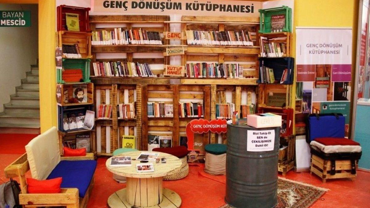 Genç Dönüşüm Kütüphanesi, Kocaeli Kitap Fuarı’nda kitapseverlere farklı bir bakış açısı katıyor.Kocaeli Büyükşehir Belediyesi’nin düzenlediği 9. Kocaeli Kitap Fuarı’nda Genç Dönüşüm Kütüphanesi adı altındaki etkinlik ilgi çekiyor. Pazardan alınan kasaların rafa, araba lastiklerinin tabureye, ahşap makaraların masaya dönüştüğü kütüphane ile hem atıkların geri dönüşümü, hem de kitap okuma alışkanlığı özendiriliyor.Büyükşehir Belediyesi’nin bu sene 9.’sunu gerçekleştirdiği Kocaeli Kitap Fuarı’nda birbirinden anlamlı stantlar ve etkinlikler kitapseverler ile buluşuyor. Birkaç üniversite öğrencisinin toplanıp Kocaeli Uluslararası Gençlik Merkezi’nin kütüphanesini daha cazip ve ilgi çekici olmasını istemesi ile başlayan Genç Dönüşüm Kütüphanesi standı, farklı kimliğiyle fuardaki yerini aldı. Günümüzde çevre sorunlarının tüm ekolojik dengeyi tehdit eder hale geldiğini belirten Genç Dönüşüm Kütüphanesi sorumluları, günlük hayatın ve sadeliğin yitirilmesi ile tüketimin arttığı, bunun da insanları bilgi ve üretimden mahrum bıraktığı görüşü ile bu çalışmayı yürüttüklerini dile getiriyor. Proje ile sadece bir kütüphane kurmayı değil, aynı zamanda kullanılmayan ve atık malzemelerin nasıl faydalı bir şekle getirildiğini görmeyi amaçladıklarını belirtiyor.Genç Dönüşüm Kütüphanesi standında kullanılmayan ve atık eşyalardan dönüştürülen malzemeler bulunuyor. Kitapların bulunduğu raflar, pazarlarda atılan kasalardan oluşuyor. Ahşap makaralardan masanın, araba lastiklerinden taburelerin olduğu kütüphaneye uğrayan kitapseverler kitapları bir başka inceliyor. İlgiyle karşılanan kütüphane Kocaeli Kitap Fuarı süresince kitapseverlerin beğenisine sunuluyor.