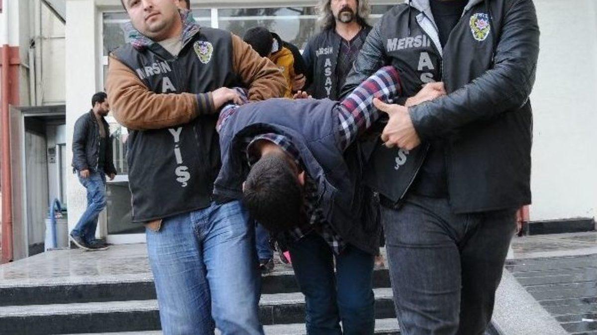 Mersin’de bir kuyumcu dükkanında meydana gelen ve kameralar tarafından kaydedilen silahlı soygunun zanlıları yakalandı.Edinilen bilgiye göre, 31 Aralık günü Mersin’in Akdeniz ilçesi Gündoğdu Mahallesi Çiftçiler Caddesi üzerindeki ’Berat Kuyumculuk’ adlı iş yeri, biri Kalaşnikoflu olmak üzere silahlı ve maskeli 4 kişi tarafından soyuldu.Olaydan sonra çalışma başlatan Asayiş Şube Müdürlüğü Gasp Büro Amirliği ekipleri, soyguncuların kaçtığı aracın modeli ile plakasının bazı harf ve rakamlarını belirledi. Plakanın siyah bant yapıştırılarak değiştirildiği bilgisine ulaşan ekipler, Gündoğdu Mahallesi ara sokaklarında park edilmiş bir araçtan şüphelendi. Aracın sahibine ulaşan polis, devam eden çalışmalarda soygunculardan 3’ünü yakalayarak gözaltına aldı. Adliyeye sevk edilen zanlılardan Ahmet B. (21), Muhammet Ozan S. (18) ve M.S.K. (16) tutuklanırken, soygun sırasında elinde Kalaşnikof bulunan şüphelinin ise yakalanmasına yönelik çalışmaların sürdüğü bildirildi.Kuyumcudan çalınan 36 adet yüzük, 6 adet kol saati ile 10’a yakın kolye ucu ise iş yeri sahibine teslim edildi.Bu arada kuyumcudaki soygun anı iş yerinin güvenlik kameraları tarafından saniye saniye kaydedildi. Kamera görüntülerine göre, ellerinde Kalaşnikof, pompalı tüfek ve tabanca bulunan yüzü maskeli soygunculardan 3’ü, hızla iş yerine girerken, eli silahlı biri ise, o sırada iş yerinin önünde bulunan çocuğunu seven bir şahsı zorla kuyumcuya sokuyor. İş yeri sahibi kadını etkisiz hale getiren soyguncular, vitrindeki altınları torbalara doldurarak kaçıyor.