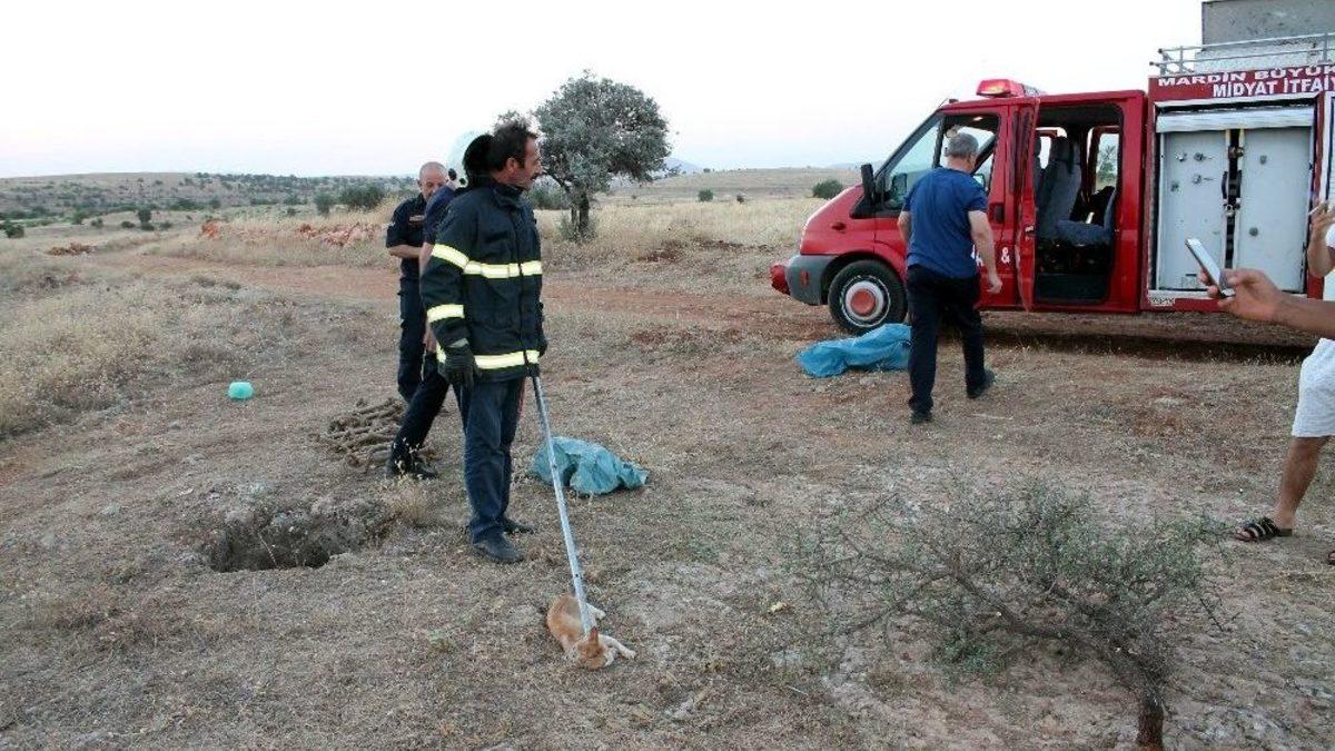 Kuyuya Düşen Kedi İtfaiye Ekiplerince Kurtarıldı