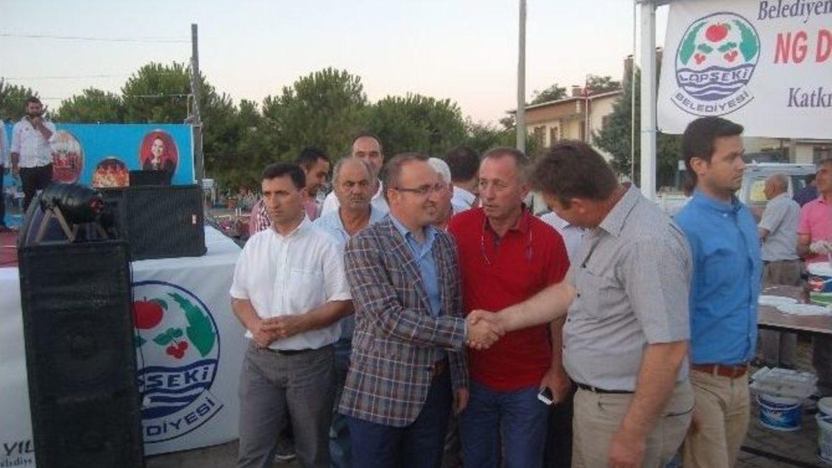 Lapseki Belediyesi tarafından düzenlenen iftar yemeğine Ak Parti Çanakkale Milletvekili Mehmet Daniş ile Ak Parti İstanbul Milletvekili Bülent Turan da katıldı.Ak Parti İstanbul Milletvekili Bülent Turan iftar'da yaptığı konuşmda,“Milletin ilk defa kendi iradesiyle sandık başına giderek cumhurbaşkanını seçecek. Halkımız her zaman bu partiye sahip çıktı. Tekrar Recep Tayyip Erdoğan'a sahip çıkacağını"belirtti. Turan, "Bu gün baba ocağında vatandaşlarımızla bir araya geldik. Ramazan ayı milli ve kardeşlik duygularının daha da pekiştiği, insanlarımızın birbirleriyle yardımlaştıkları, manevi duyguların üst noktaya ulaştığı bir ay. Sağ olsun halkımız da bizleri her zaman bağrına bastı. Bugün onlarla orucumuzu açmaktan onur duyduk. Rabbim tutulan oruçları ve yapılan ibadetleri kabul eylesin" dedi.İftar’a, Lapseki Belediye Başkanı Eyüp Yılmaz, Belde Belediye Başkanları, AK Parti İlçe Başkanı Nuri Kasçı, İl Genel Meclis Üyeleri ve Ak parti ilçe teşkilatı ve vatandaşlar katıldı.