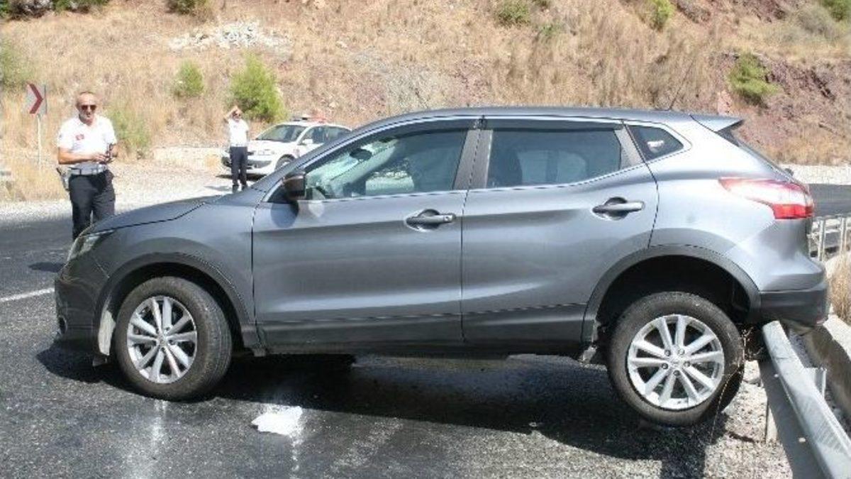 Muğla’nın Marmaris ilçesinde lastiği patlayan lüks bir jip , uçuruma yuvarlanmaktan bariyer sayesinde kurtuldu. Kazada sürücü hafif yaralandı.Kaza, saat 14.30 sıralarında Armutalan -Datça yolu üzerinde meydana geldi. Datça istikametinden gelen Turhan Yaltırık’ın kullandığı 48 SV 658 plakalı otomobilin rampa aşağı indiği sırada sağ ön lastiği patladı. Kontrolden çıkan araç asfaltta savrulduktan sonra uçurumun kenarındaki bariyere çarparak durabildi. Kazada sürücü Turhan Yaltırık hafif yaralandı. Olay yerine çağrılan ambulansla hastaneye kaldırılan sürücünün sağlık durumunun iyi olduğu öğrenildi.Kazayla ilgili soruşturma başlatıldı.