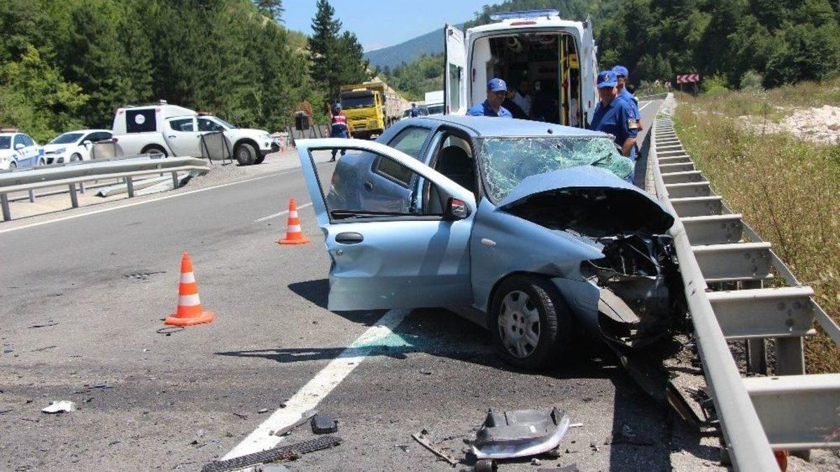 Bolu’da lastiğinin patlaması sonucu karşı şeride geçen otomobil, LPG tankeri ile çarpıştı. Kazada otomobil sürücüsü Birhan Ceylan yaşamını yitirdi.Kaza, Yeniçağ - Mengen karayolu Yumrutaş mevkiinde saat 12.30 sıralarında meydana geldi. Edinilen bilgilere göre, Mengen istikametine ilerleyen otomobil lastiğinin patlaması nedeniyle karşı şeride geçti. Otomobil bu sırada Halil T. idaresindeki 27 C 0522 plakalı LPG tankeri ile çarpıştı. Kazayı gören diğer sürücüler tarafından acil yardım ekiplerine haber verildi. Kısa sürede olay yerine gelen ekipler tarafından kazaya karışan sürücülerin kontrolleri yapıldı. Kazada hurdaya dönen otomobilin içinde sıkışan sürücü Birhan Ceylan (52) yaşamını yitirdi. Tanker sürücüsü ise kazadan yara almadan kurtuldu. Kaza nedeniyle Yeniçağa - Mengen karayolu yaklaşık yarım saat ulaşıma kapandı. Araçların yoldan kaldırılmasıyla ulaşım normal akışına döndü. Kazayla ilgili soruşturma başlatıldı.
